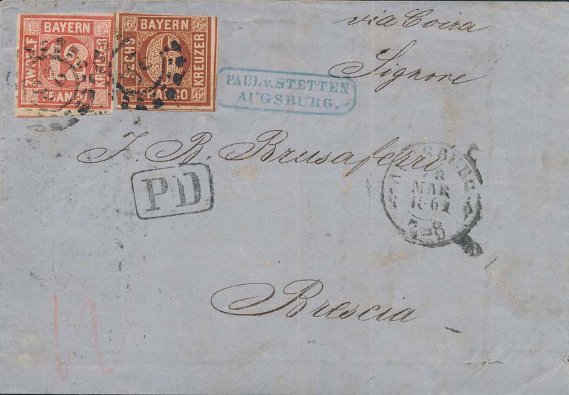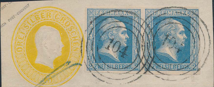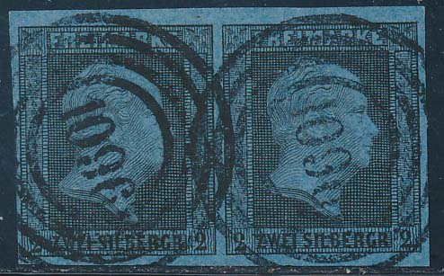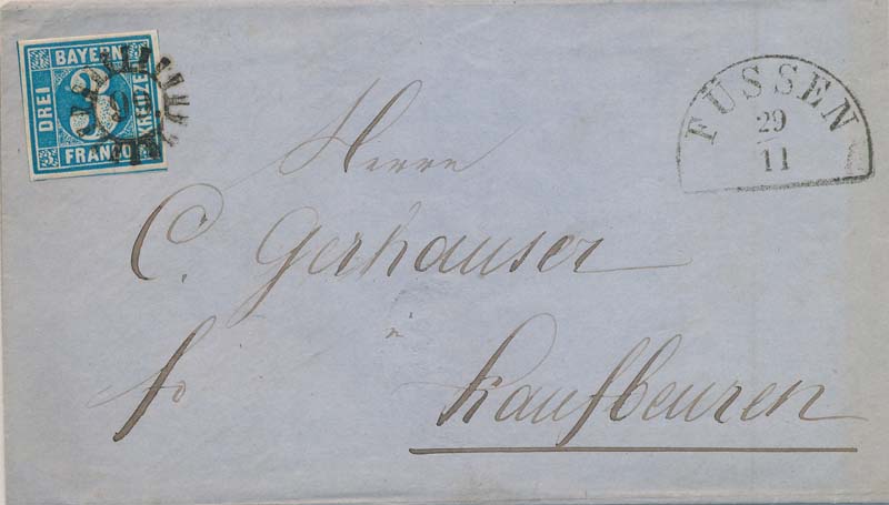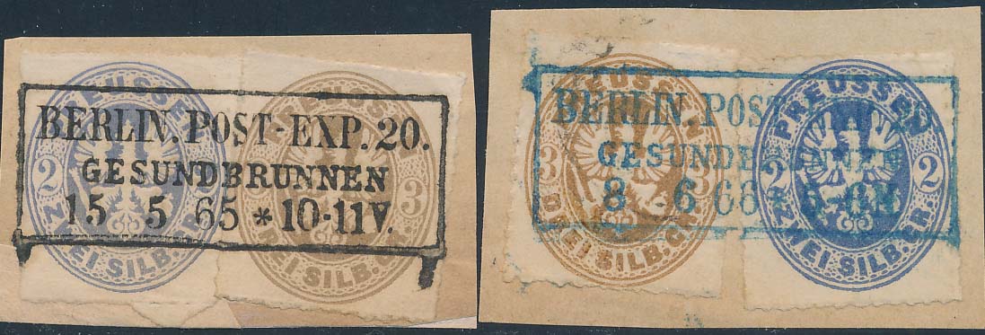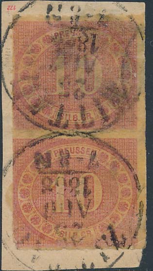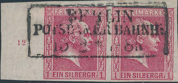 "1125" zentrisch glasklar auf Bf.-St. mit breitrandiger 2 Sgr. Ausg. 1850 |