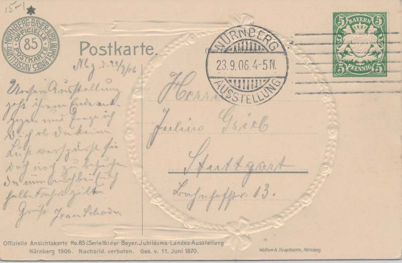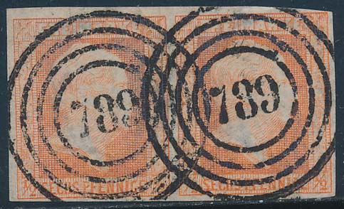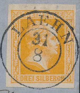 "1913" zentrisch glasklar auf voll bis breitrandiger ½ Sgr. Ausg. 1850 |