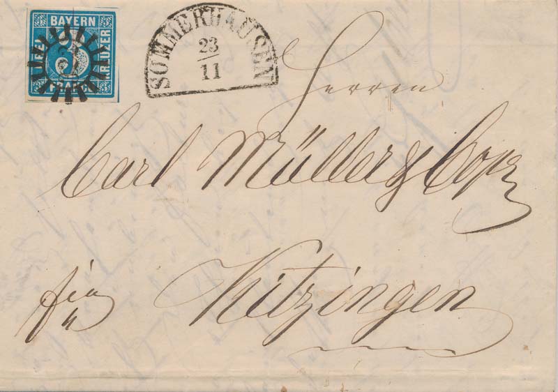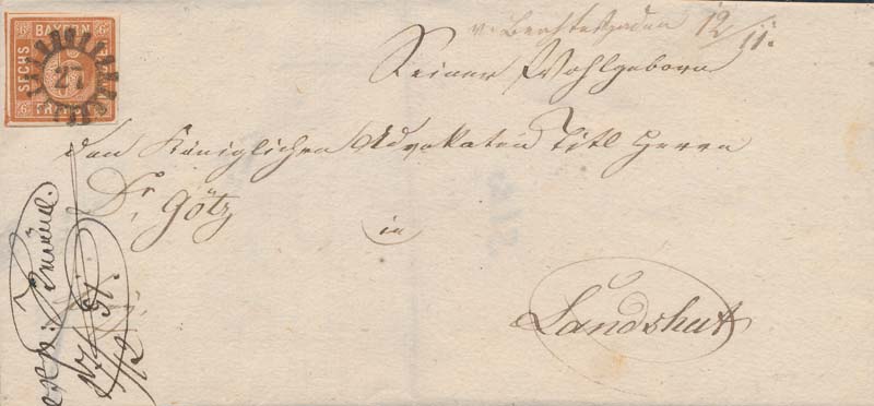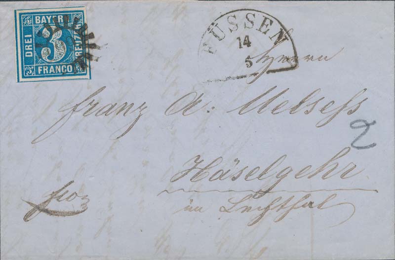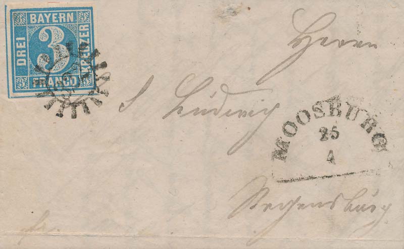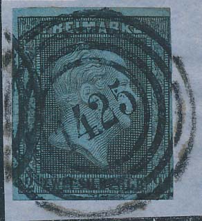"1425" zentrisch glasklar auf Bf.-St. mit voll bis breitrandiger 2 Sgr. Ausg. 1850 |
