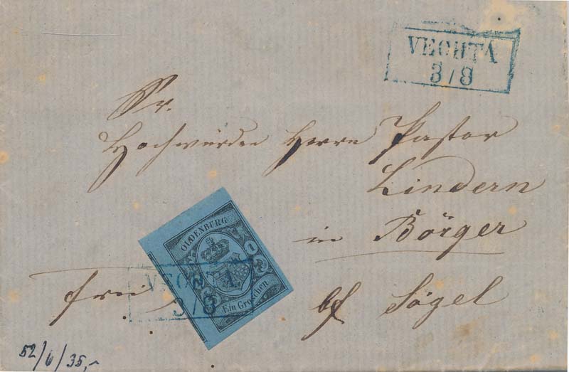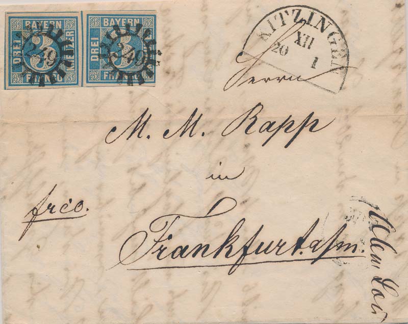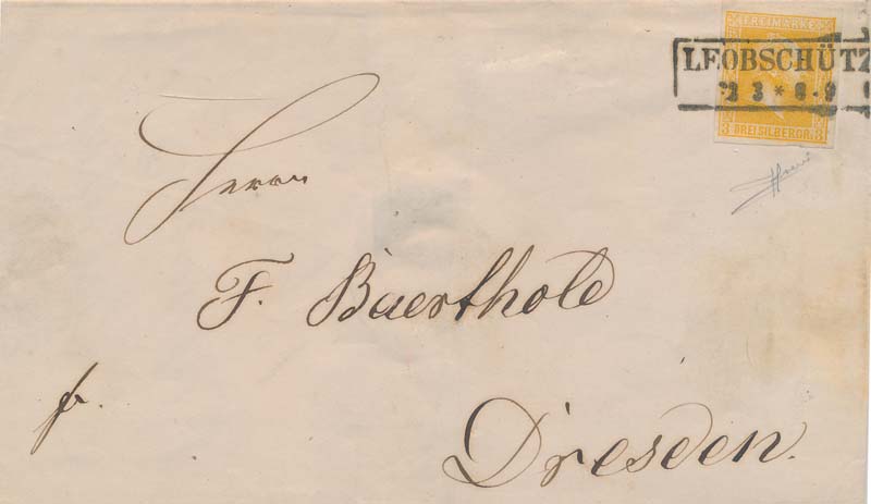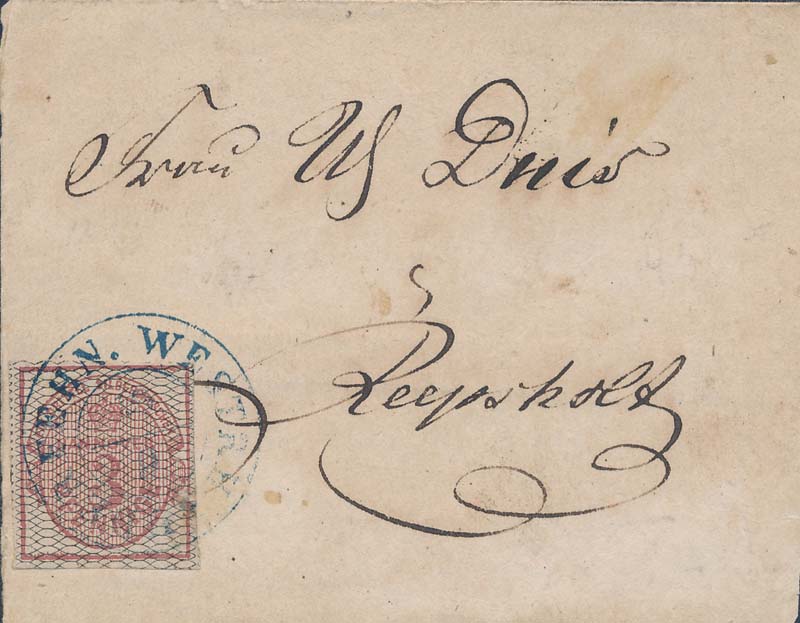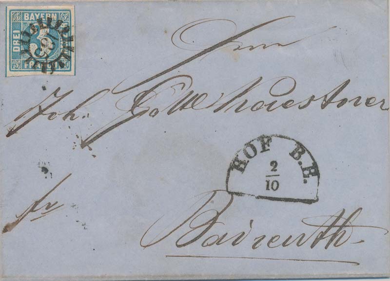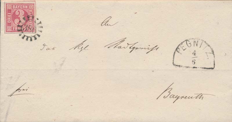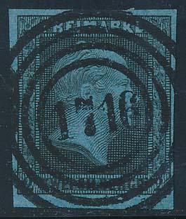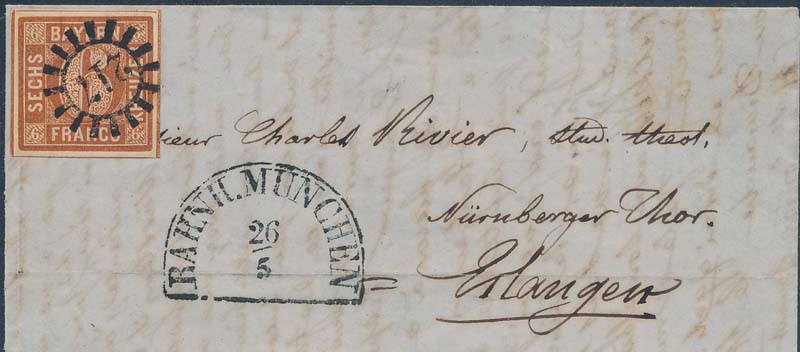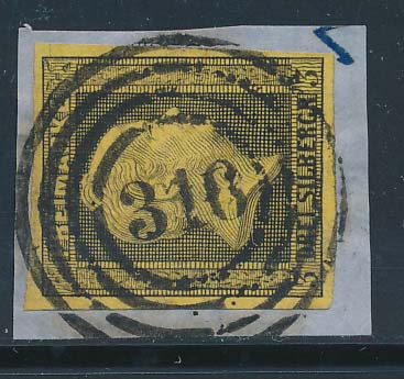 "316" zentrisch glasklar auf Bf.-St. mit breitrandiger 3 Sgr. Ausg. 1850 |