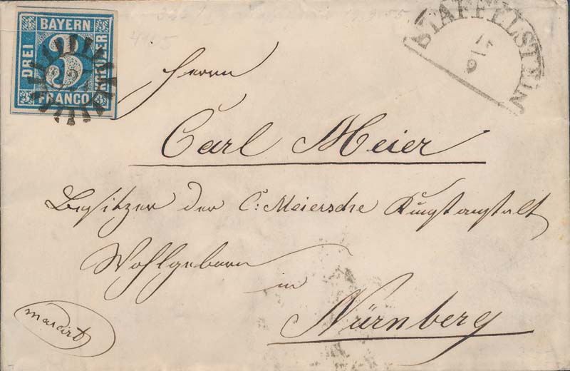 "1376" ideal auf voll bis breitrandiger 3 Sgr. Ausg. 1850 |