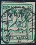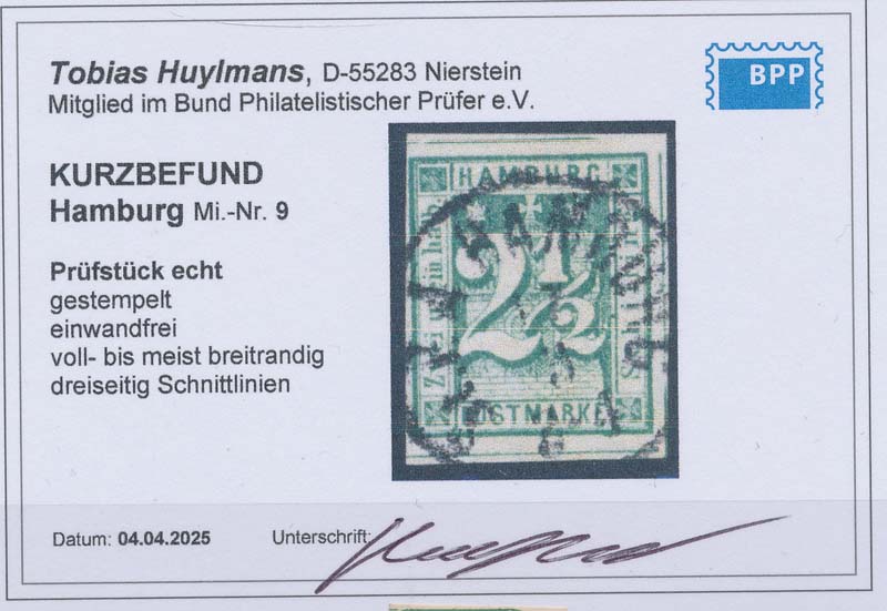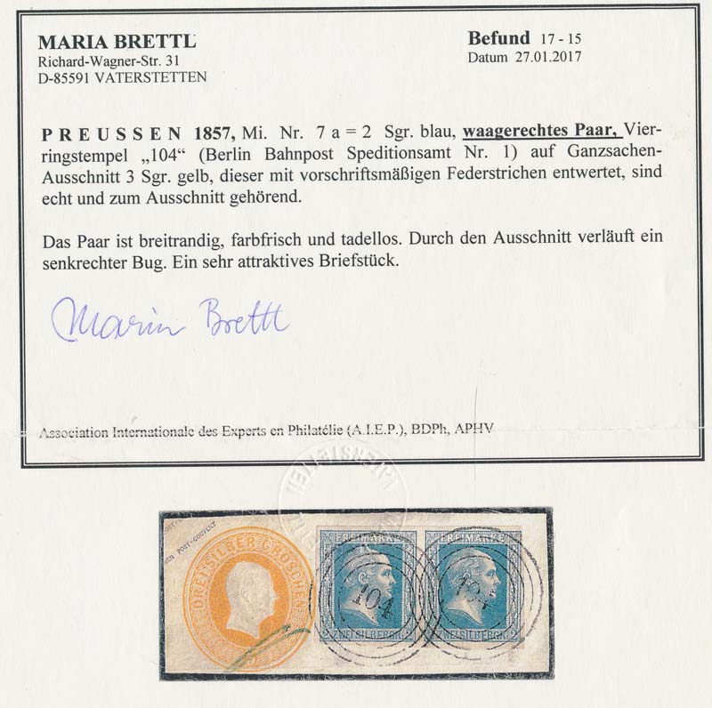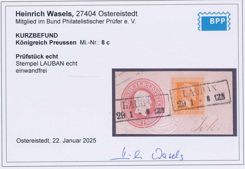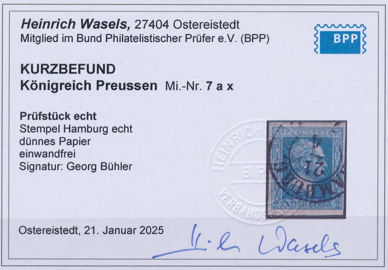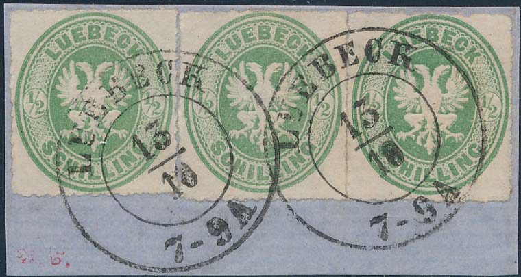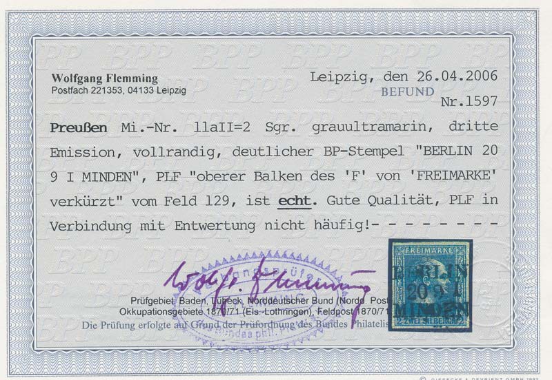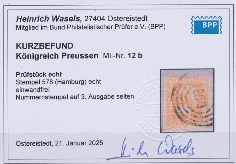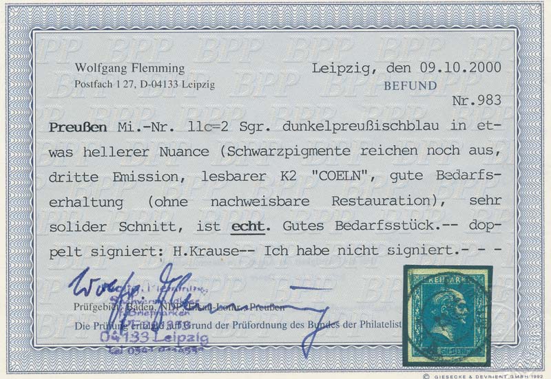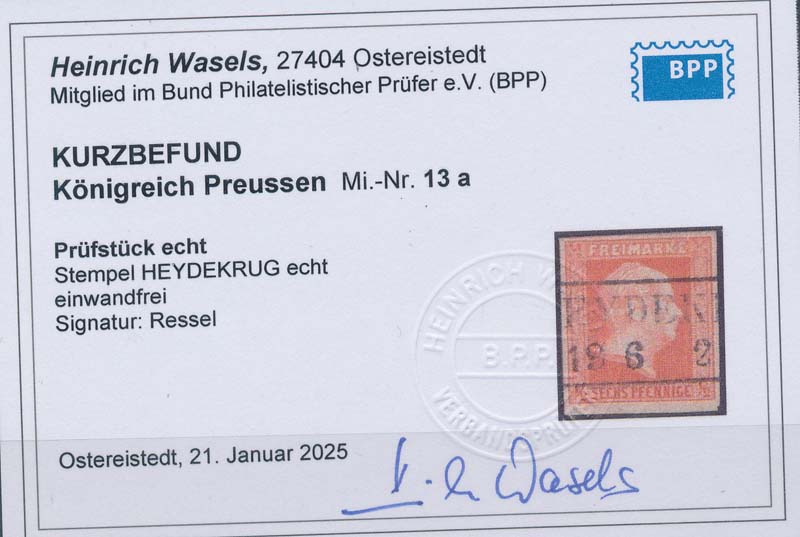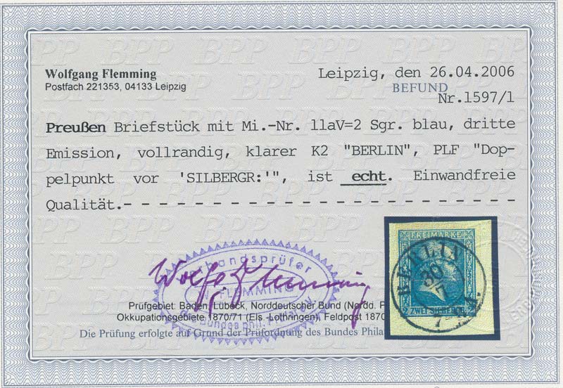 "1697" zentrisch glasklar auf voll bis breitrandiger ½ Sgr. Ausg. 1850 gepr. Hoffmann Giesecke |
