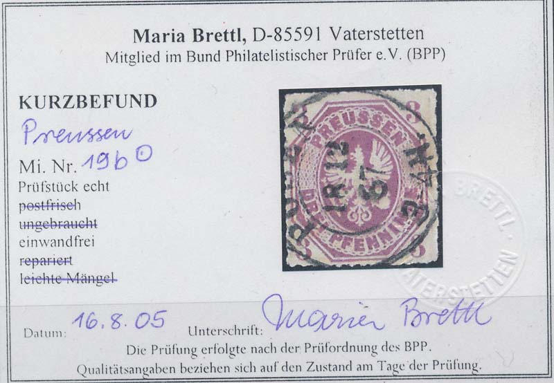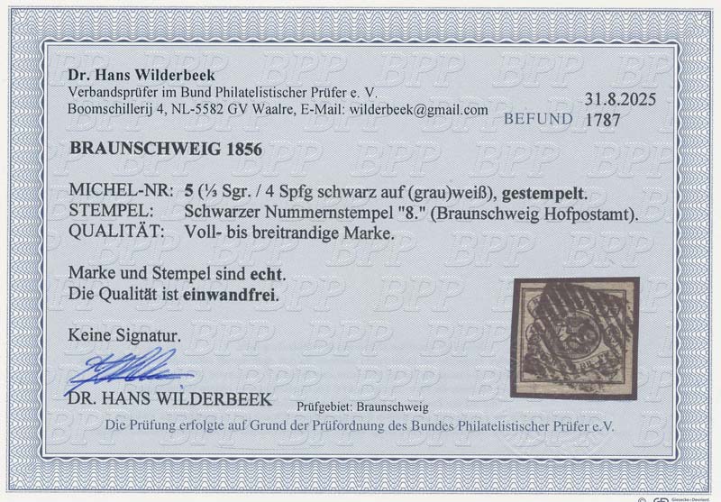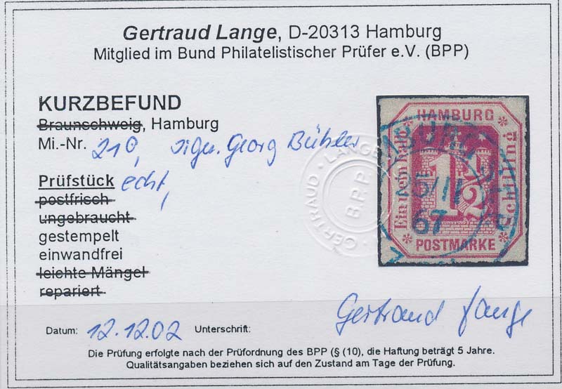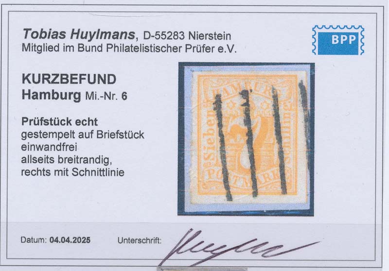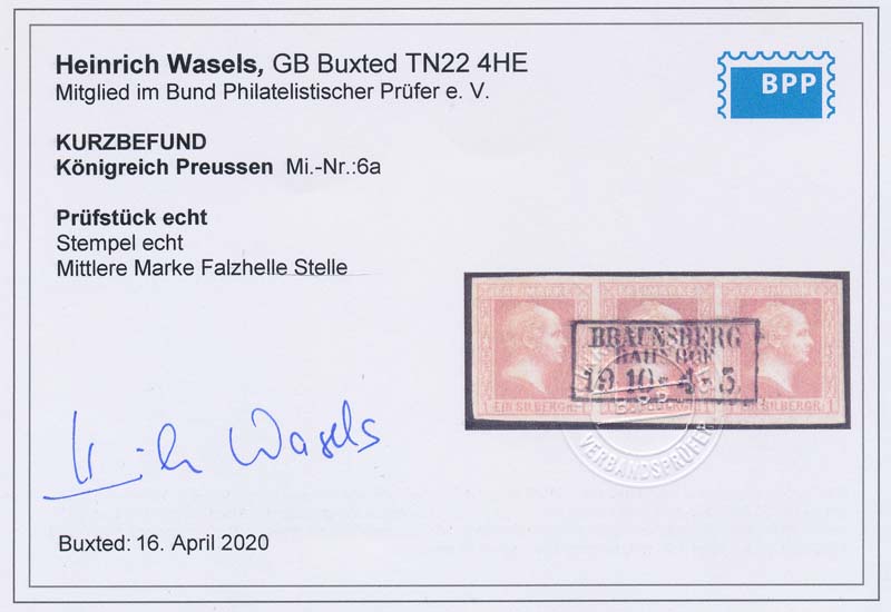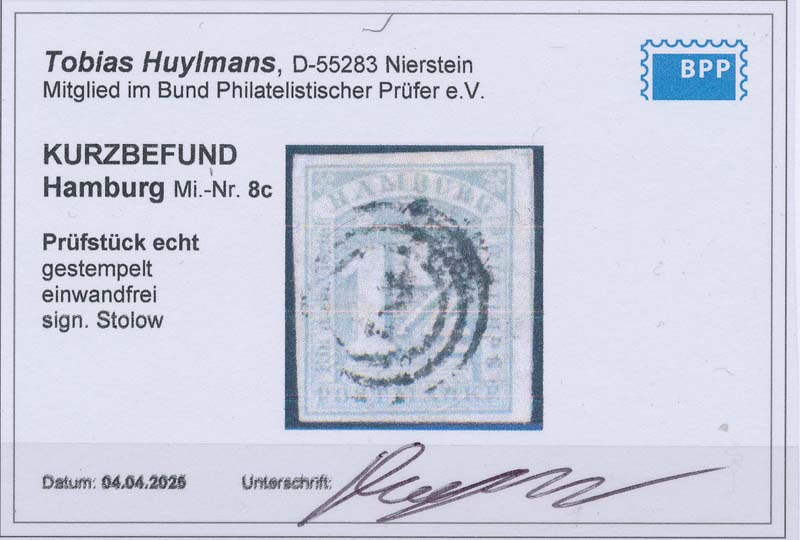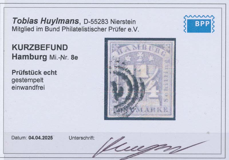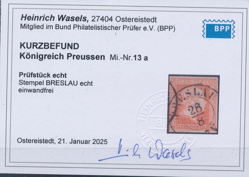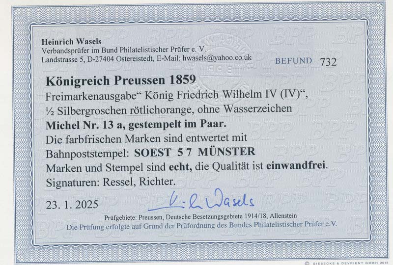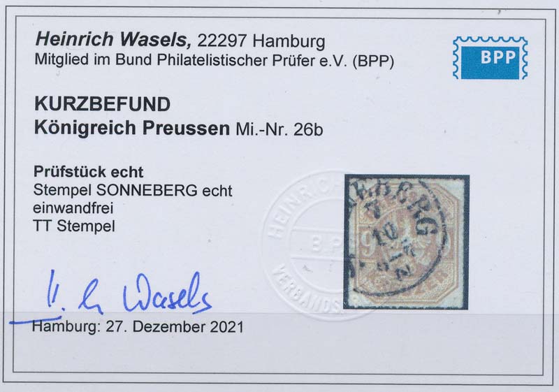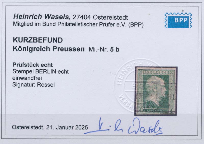 "1697" zentrisch glasklar auf voll bis breitrandiger ½ Sgr. Ausg. 1850 gepr. Hoffmann Giesecke |