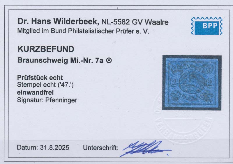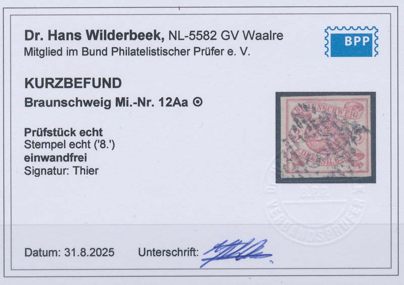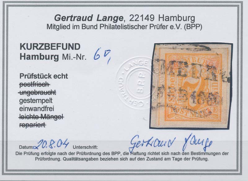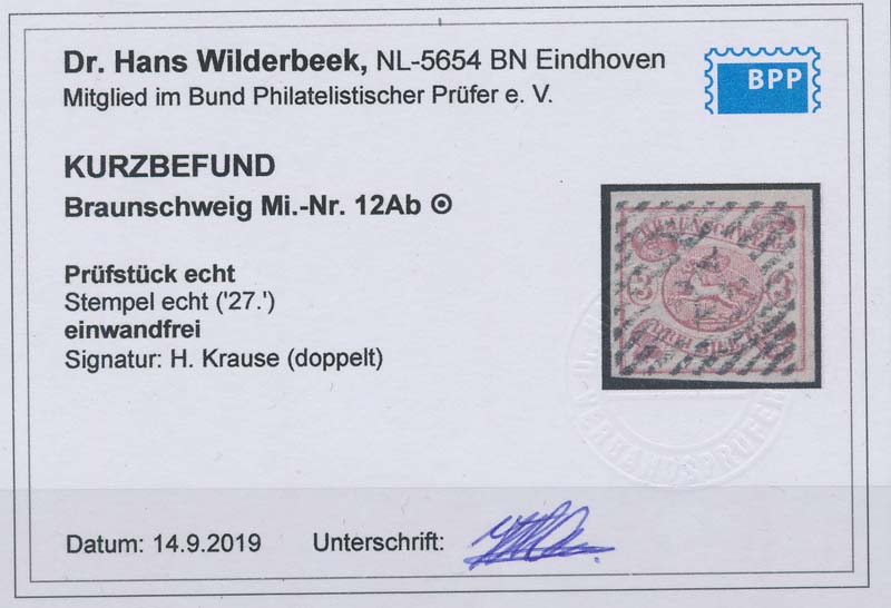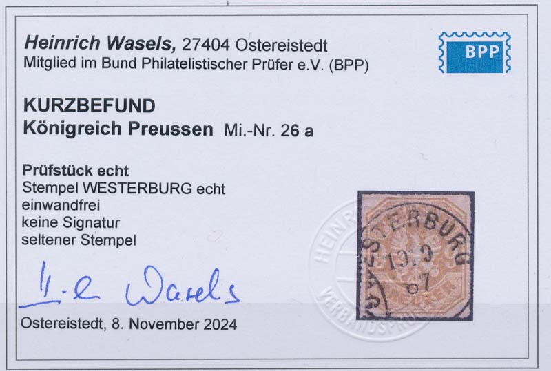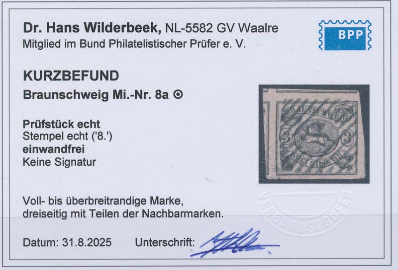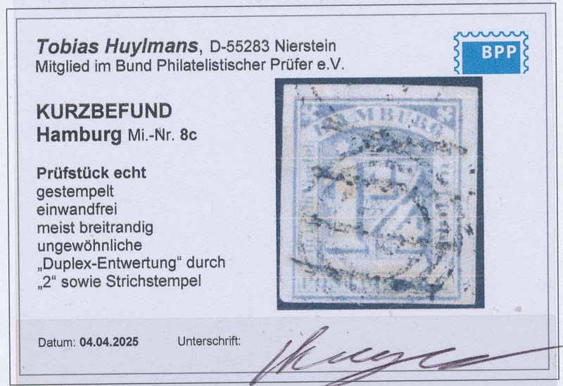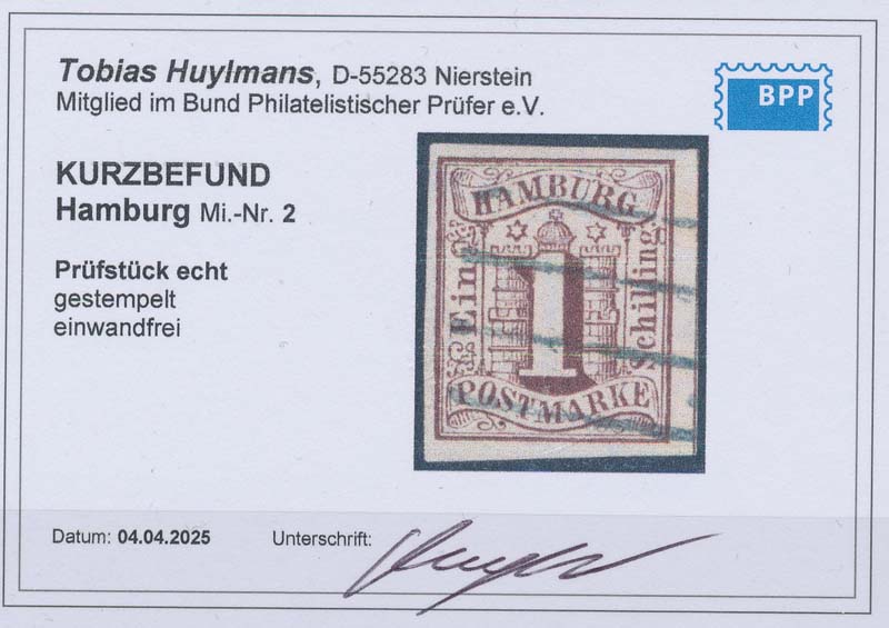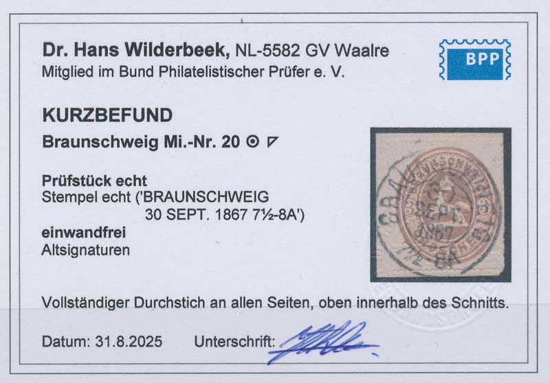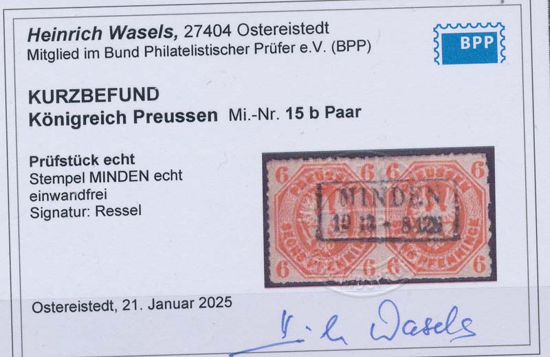 "1697" zentrisch glasklar auf voll bis breitrandiger ½ Sgr. Ausg. 1850 gepr. Hoffmann Giesecke |
