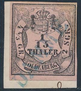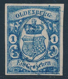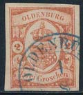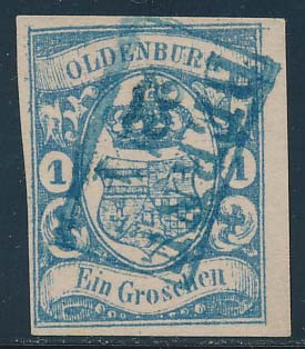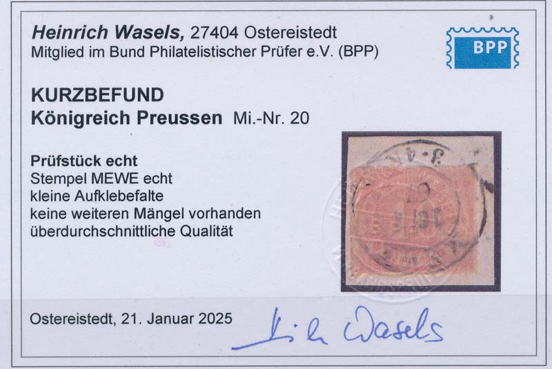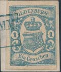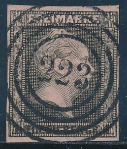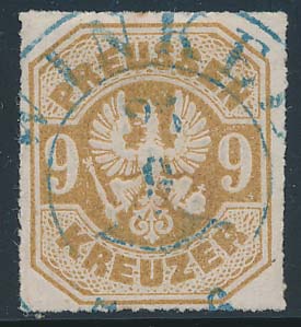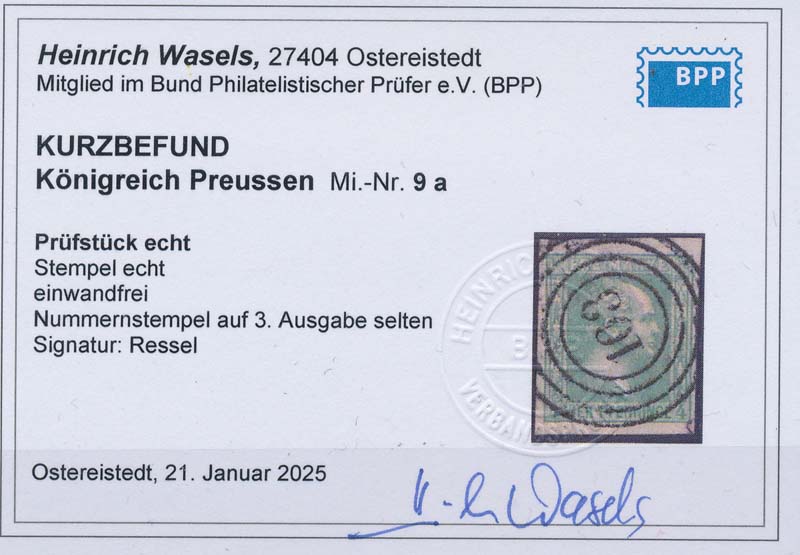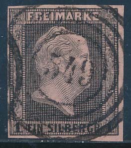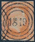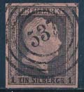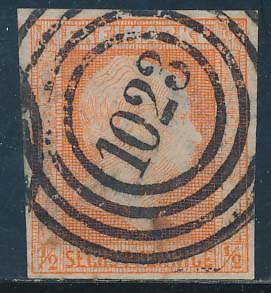 "1023" zentrisch glasklar auf voll bis breitrandiger ½ Sgr. Ausg. 1850 rücks. etwas Tintenspiegel |
