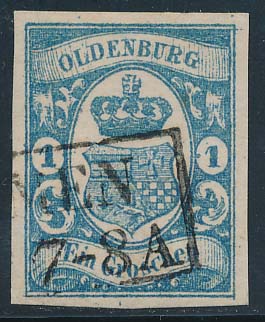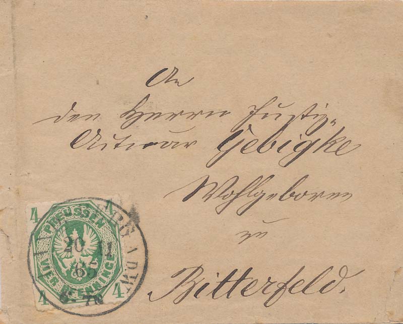 "1235" zentrisch glasklar auf breitrandiger 1 Sgr. Ausg. 1850 |