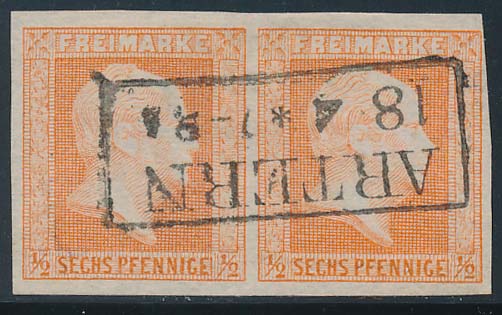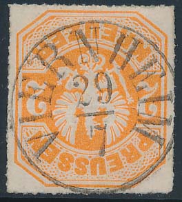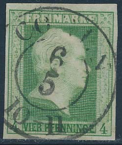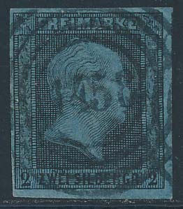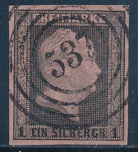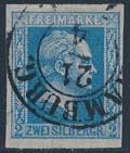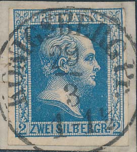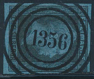 "1356" zentrisch glasklar auf r. oben etwas knapper 2 Sgr. Ausg. 1850 |