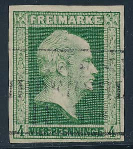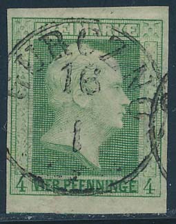 "1439" ideal auf breitrandiger 4 Pf. Ausg. 1856 Pracht sign. Grobe |