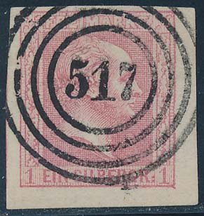 "517" zentrisch glasklar auf breitrandiger 1 Sgr. Ausg. 1858 Pracht gepr. Flemming |