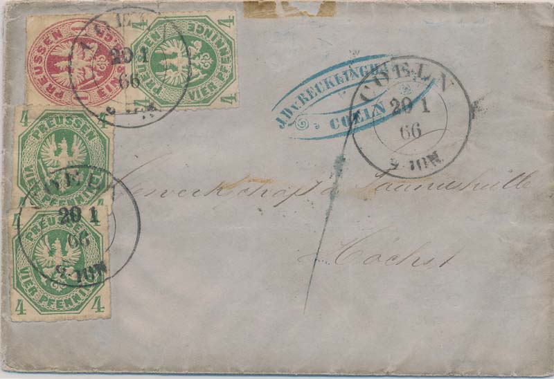 "1407" ideal auf Bf.-St. mit voll bis breitrandiger 1 Sgr. Ausg. 1850 |
