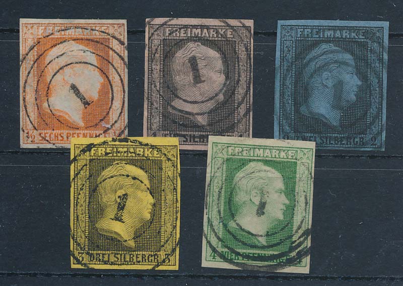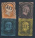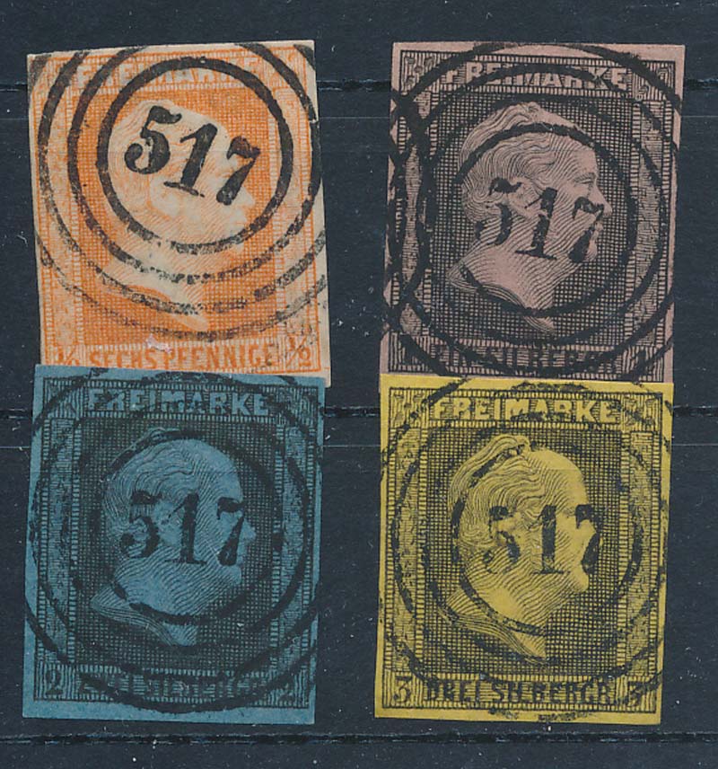 "517" je zentrisch glasklar auf ½ bis 3 Sgr. Ausg. 1850 je breitrandig Pracht schöne Serie, die ½ Sgr. gepr. Kastaun |
