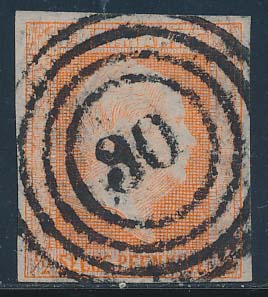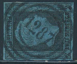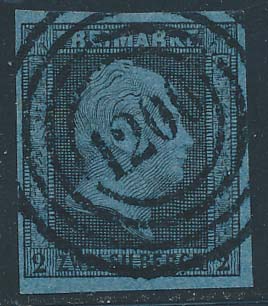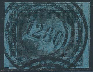 "1280" zentrisch glasklar auf voll bis breitrandiger 2 Sgr. Ausg. 1850 |