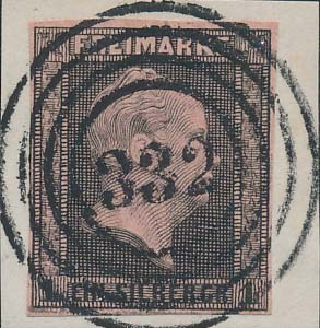 "332" ideal auf Bf.-St. mit voll bis breitrandiger 1 Sgr. Ausg. 1850 |