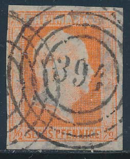 "1391" zentrisch glasklar auf l. etwas knapper 2 Sgr. Ausg. 1850 |