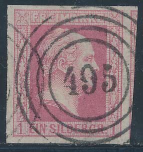 "495" zentrisch glasklar auf breit bis überrandiger 1 Sgr. Ausg. 1857 |