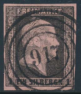 "917" ideal auf breitrandiger 1 Sgr. Ausg. 1850 "b"-Farbe gepr. Flemming |