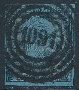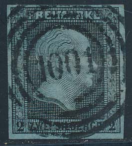 "1001" zentrisch glasklar auf breitrandiger 2 Sgr. Ausg. 1850 |