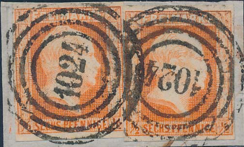"1091" zentrisch glasklar auf voll bis breitrandiger 2 Sgr. Ausg. 1850 |