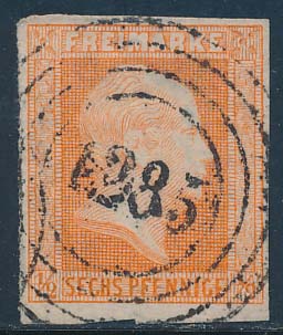 "1285" zentrisch glasklar auf voll bis breitrandiger ½ Sgr. Ausg. 1850 |
