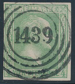 "1439" ideal auf voll bis breitrandiger 4 Pf. Ausg. 1858 Pracht |