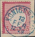 3 Kr. Wappen Ausg. 1868 mit Plattenfehler IV Pracht gepr. Seeger |