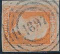 "694" zentrisch glasklar auf breitrandiger 1 Sgr. Ausg. 1850 |