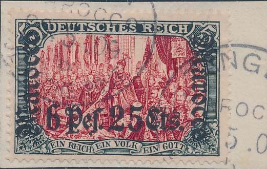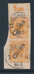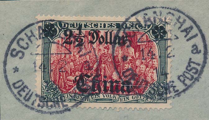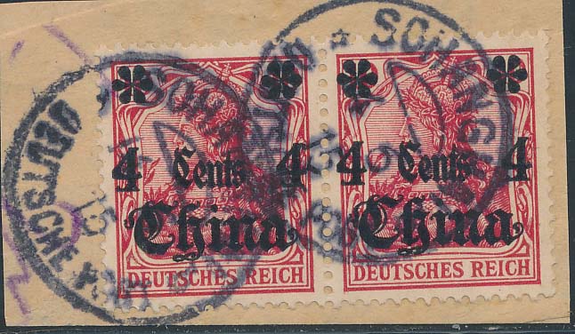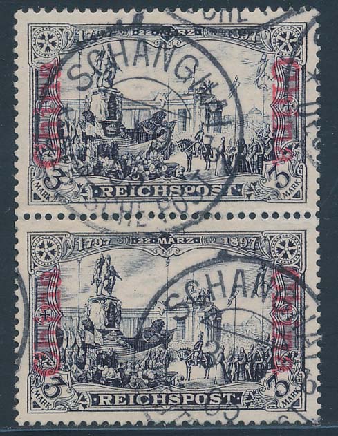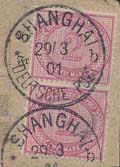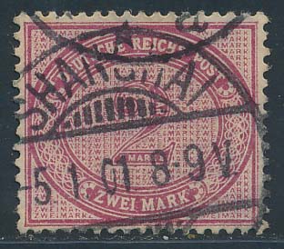 Vorläufer 2 Mk Ziffer mit zentrischen Stpl. "SHANGHAI" (Schweizer Stpl.) vom 5.1.01 (nach Steuer 30fach!) |