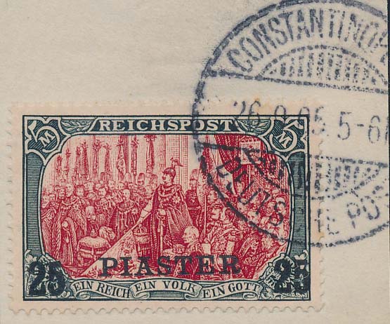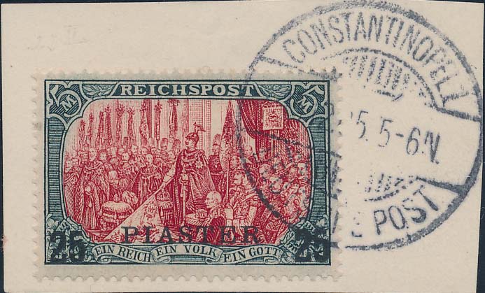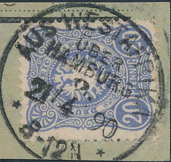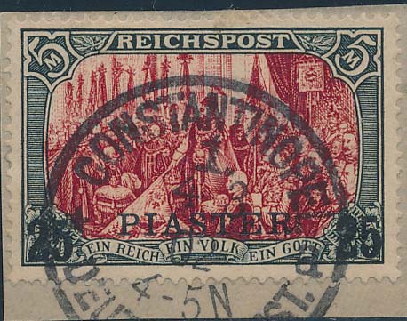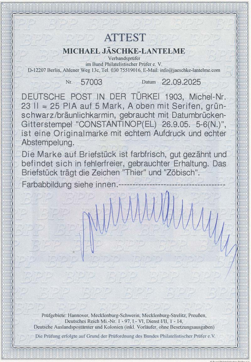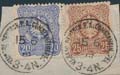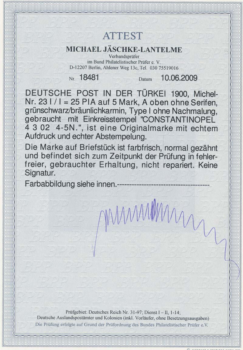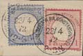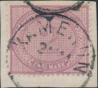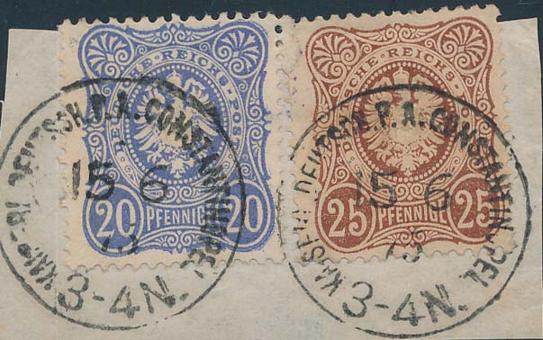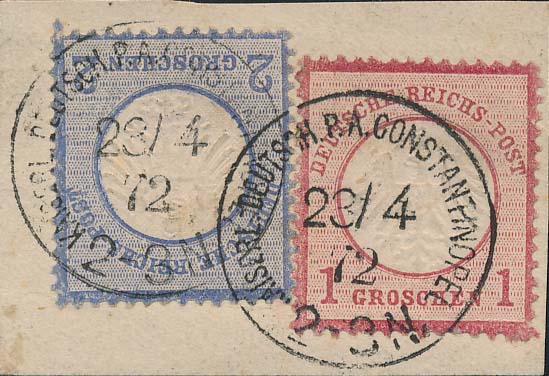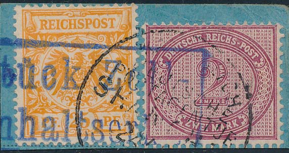 Vorläufer 2 Mk. Ziffer "e"-Farbe u. 25 Pf. Krone-Adler "b"-Farbe zusammen auf Bf.-St. Pracht gepr. Jäschke-L. |