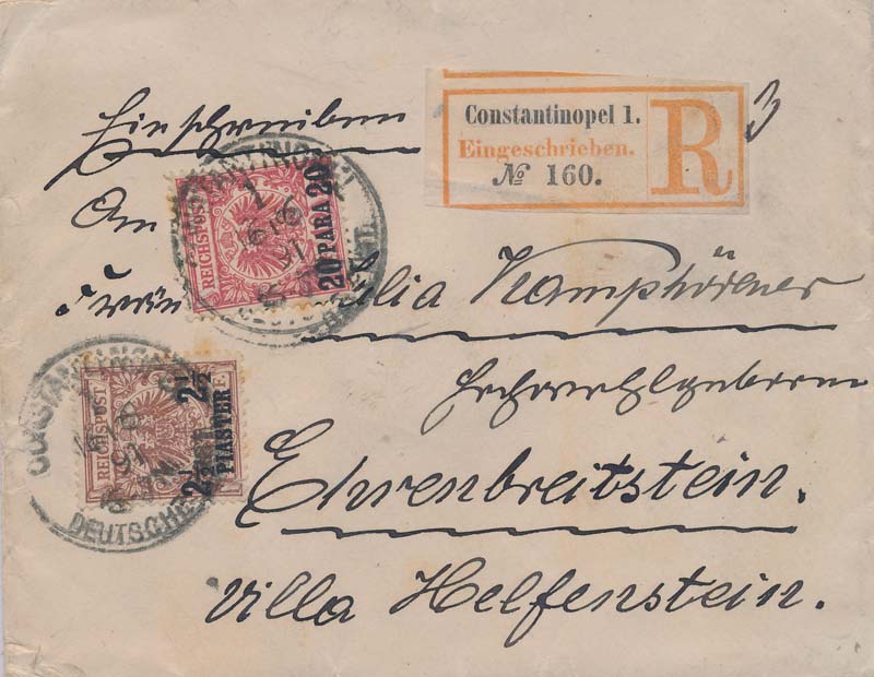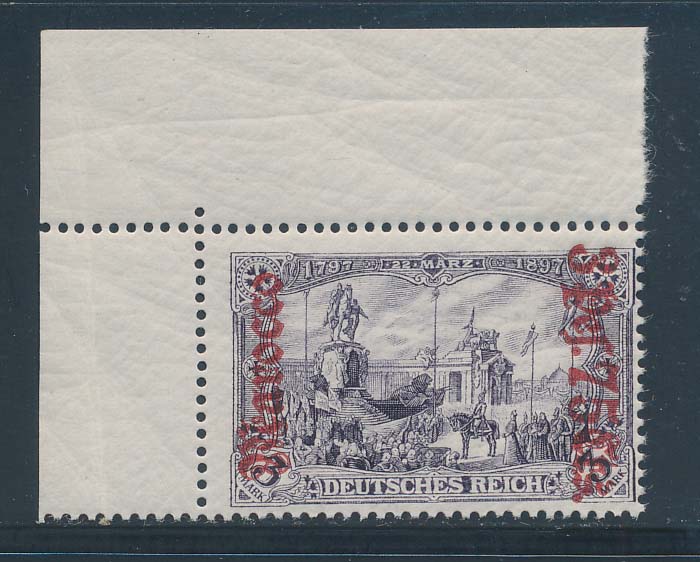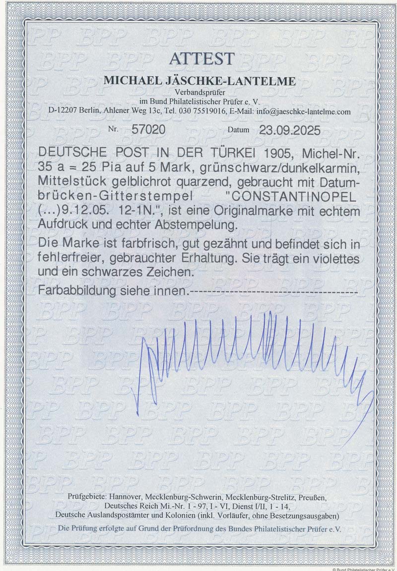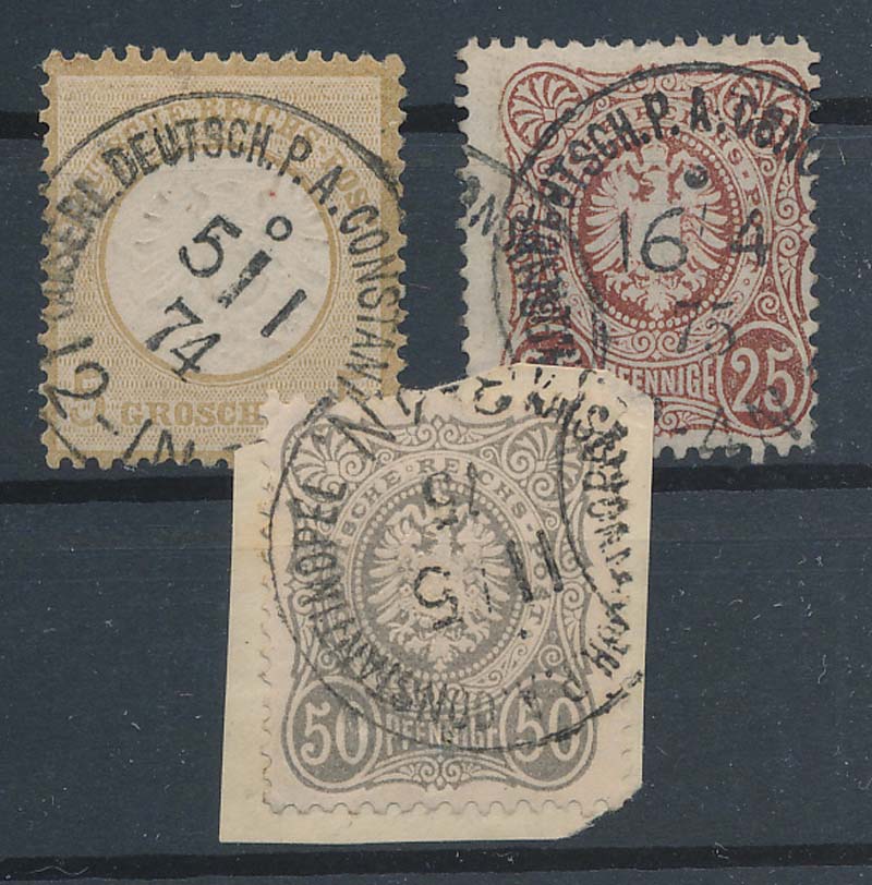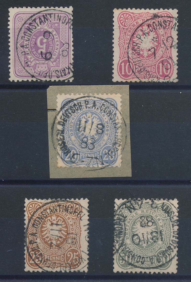 Vorläufer 2 Mk. Ziffer "e"-Farbe u. 25 Pf. Krone-Adler "b"-Farbe zusammen auf Bf.-St. Pracht gepr. Jäschke-L. |