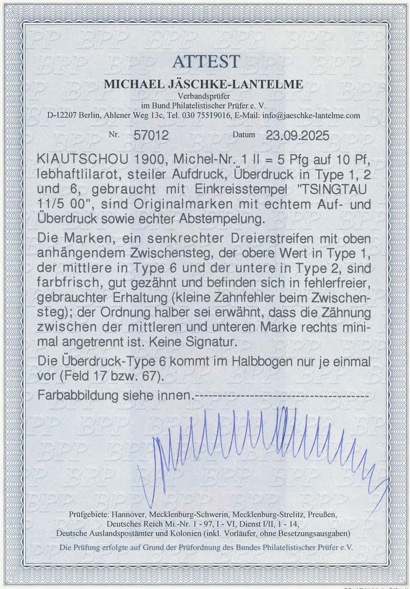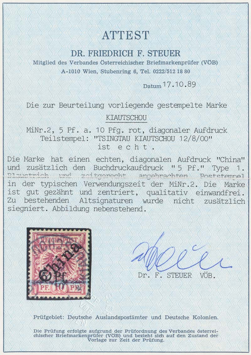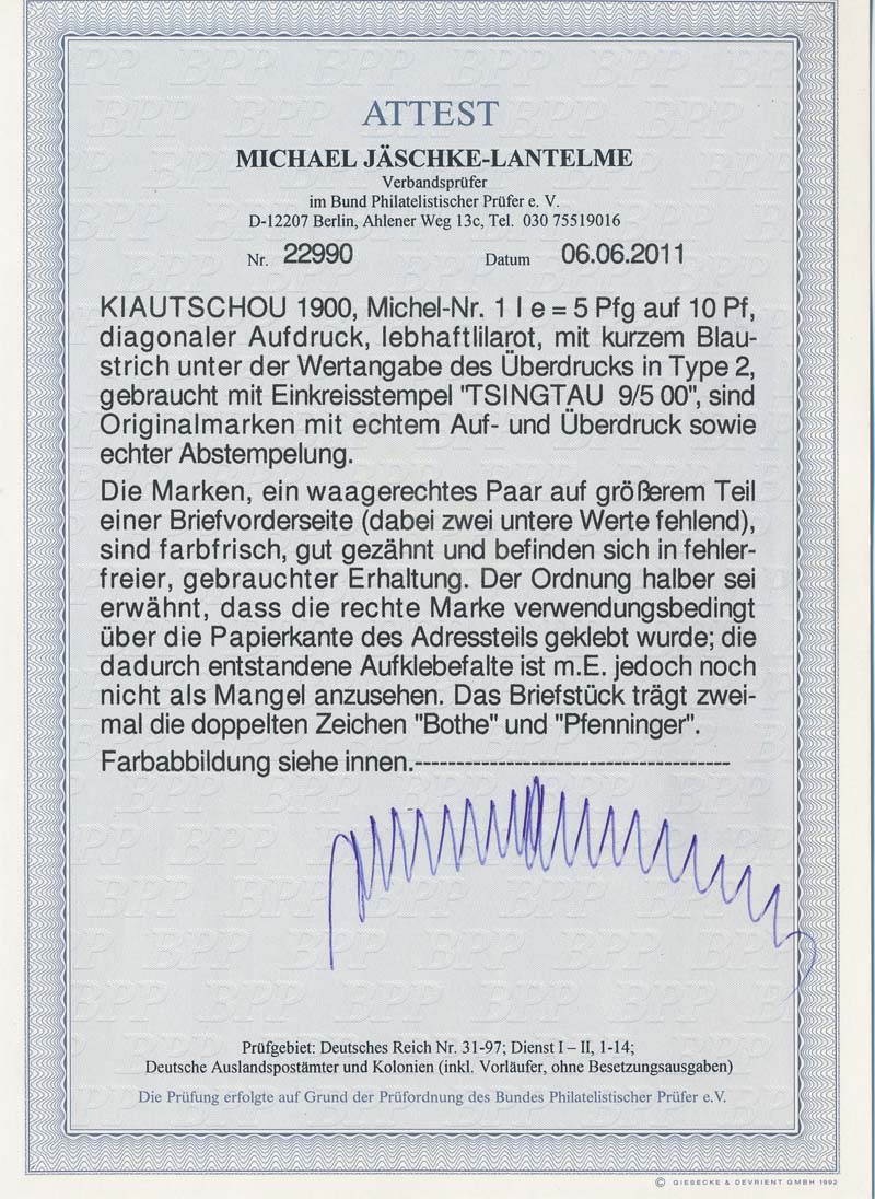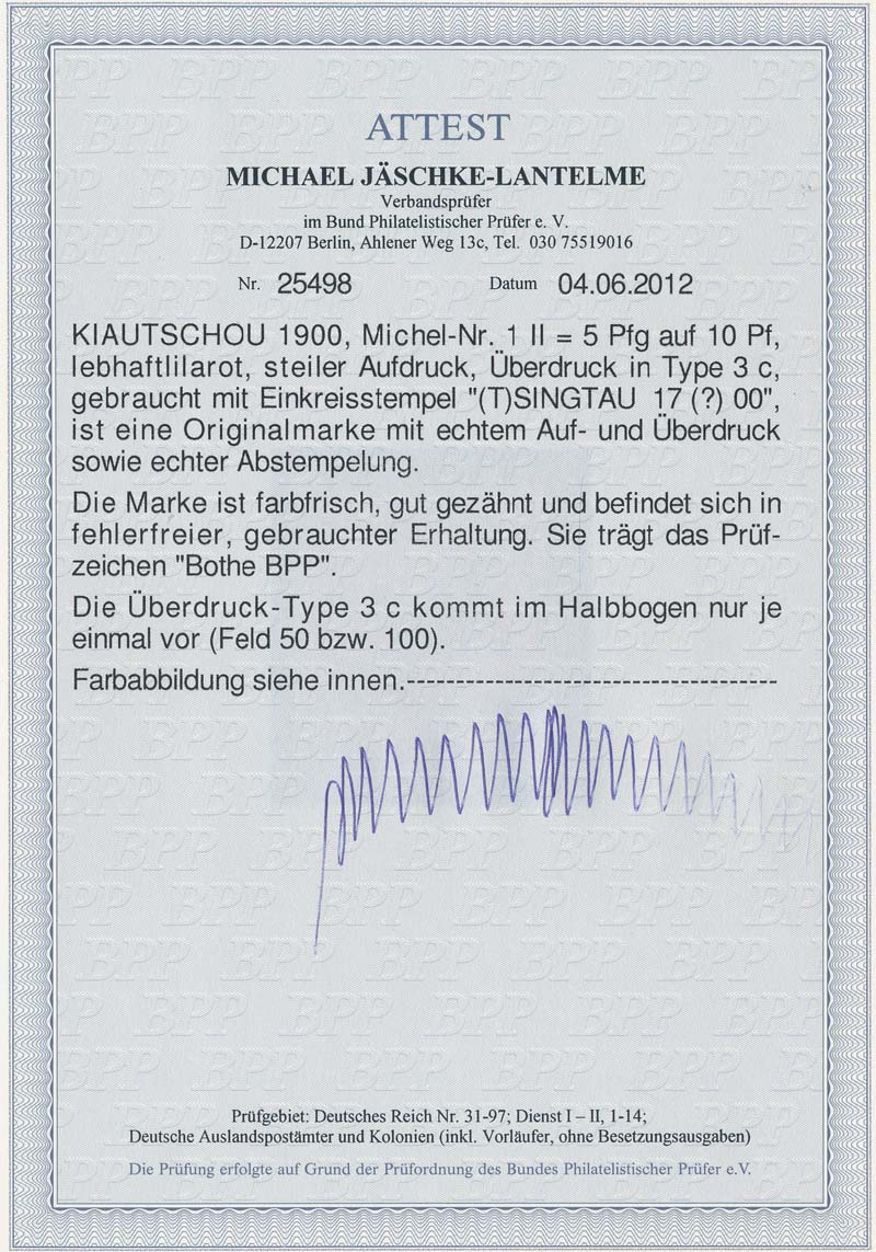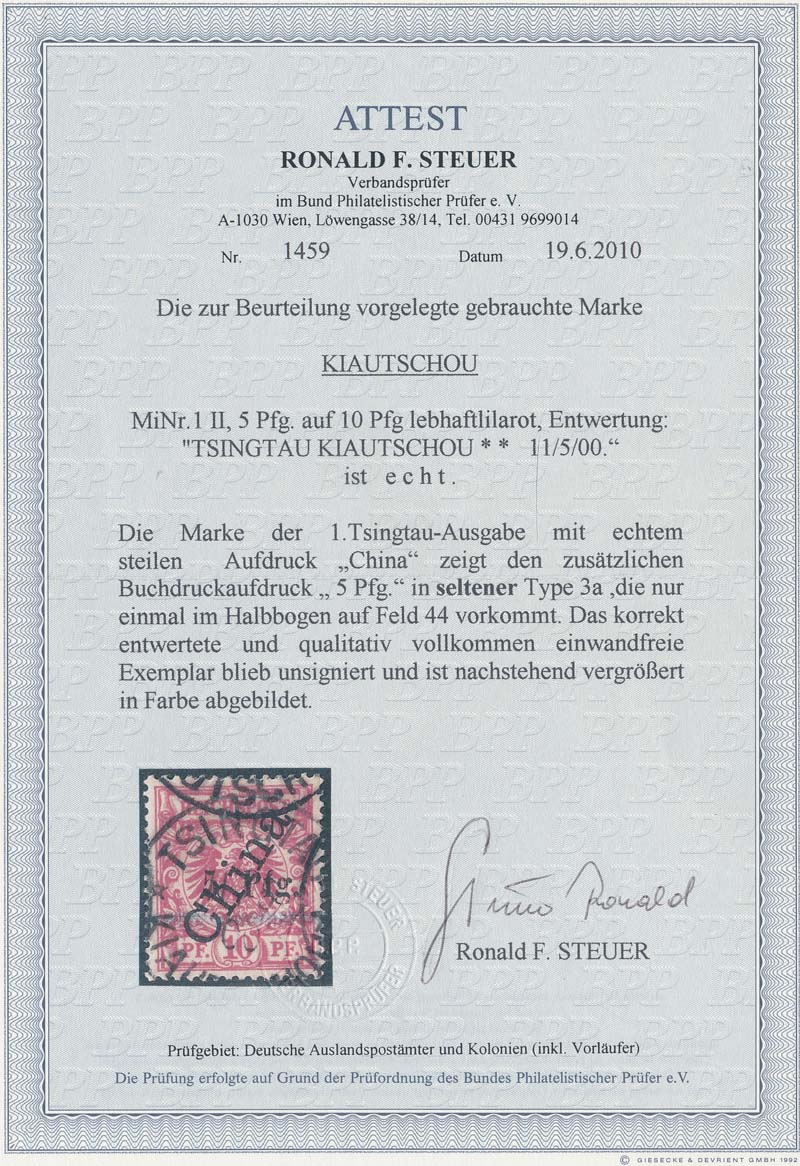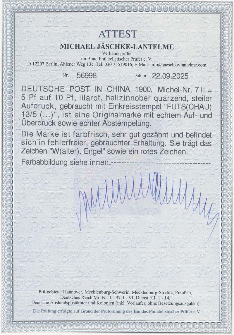 5 pf a. 10 Pf. Krone-Adler mit steilen Aufdruck sogen. Futschau-Provisorium Pracht neues Fotoattest Jäschke-L. "echt u. einwandfrei" |
