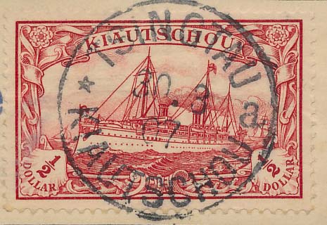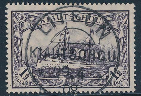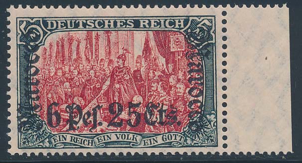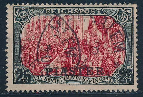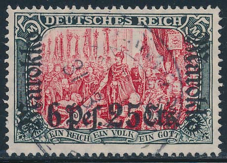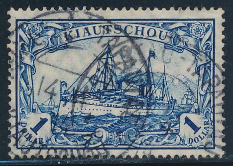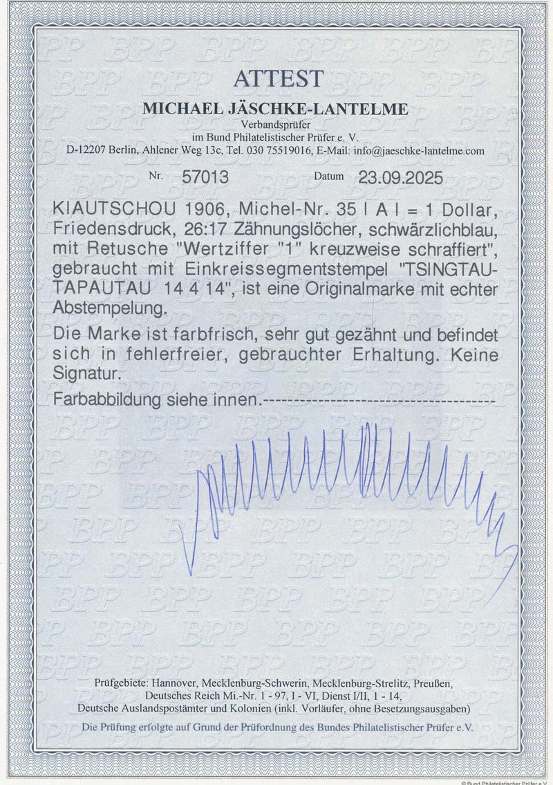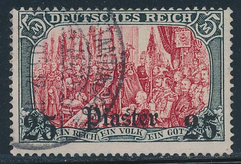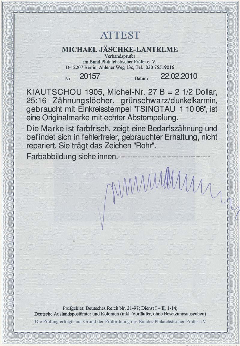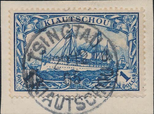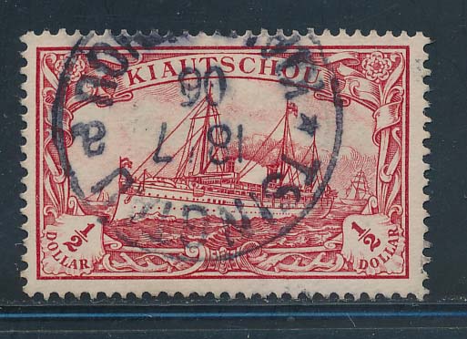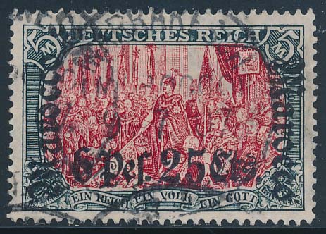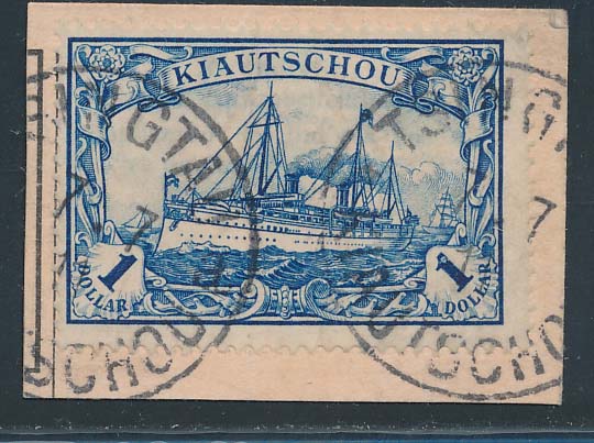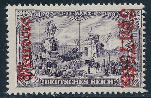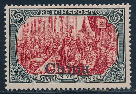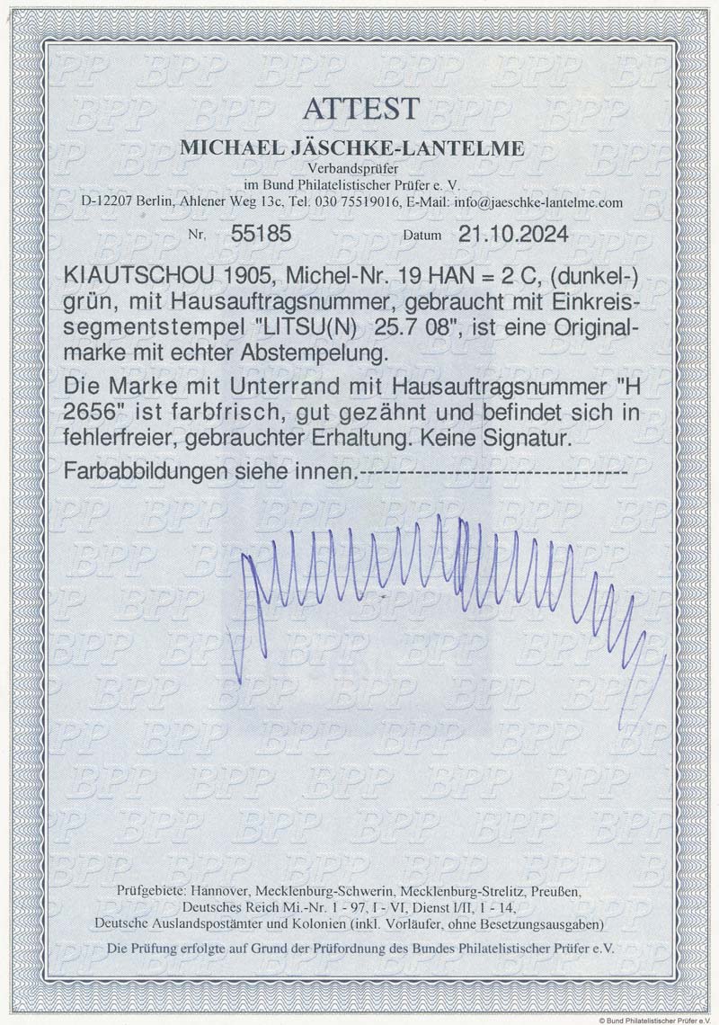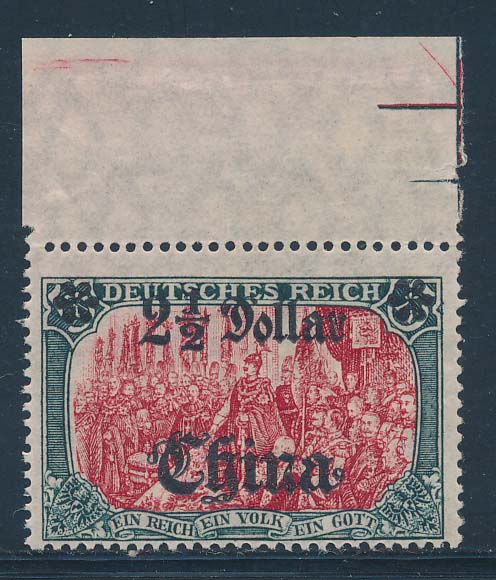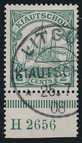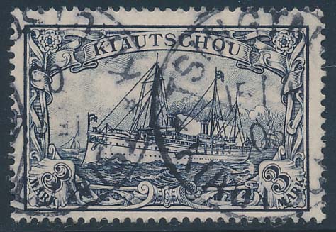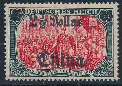30 Pf. Handstpl.-Aufdruck mit zentrischen Stpl. "TIEN(TSIN) vom 30.1.01 mehrfach sign. u. neues Fotoattest Jäschke-L."echt, bis auf einen hellen u. verkürzten Zahn oben rechts keine weiteren Mängel" eine seltene Marke |