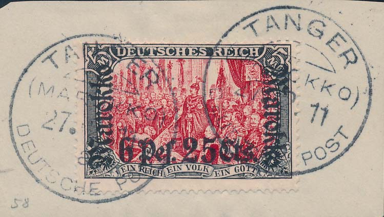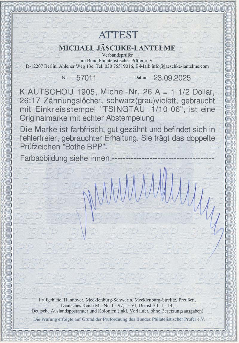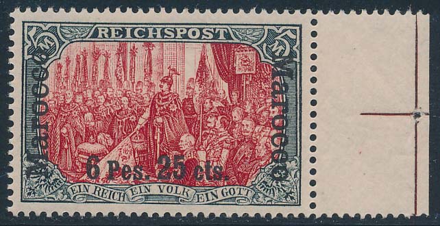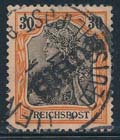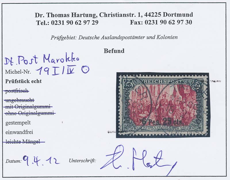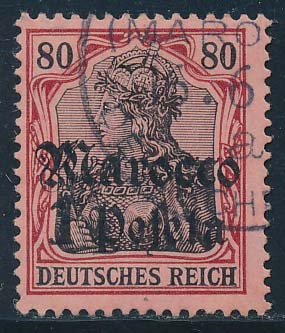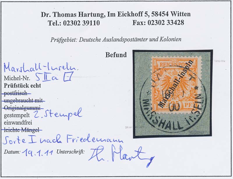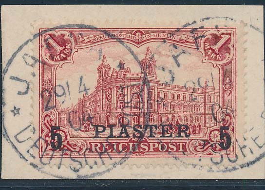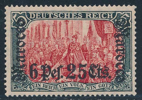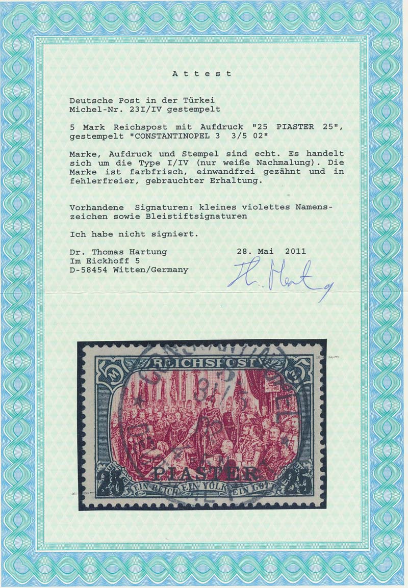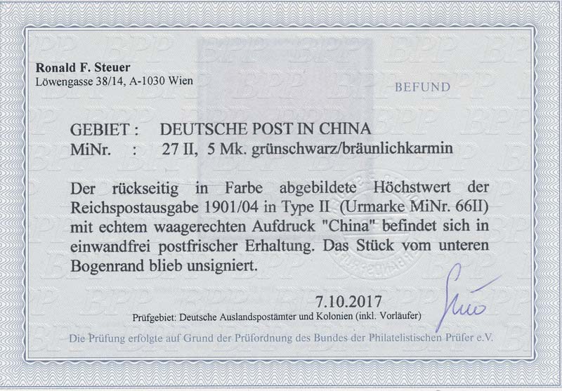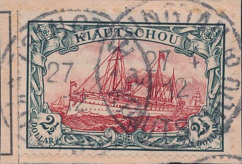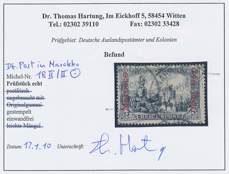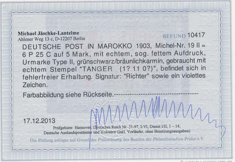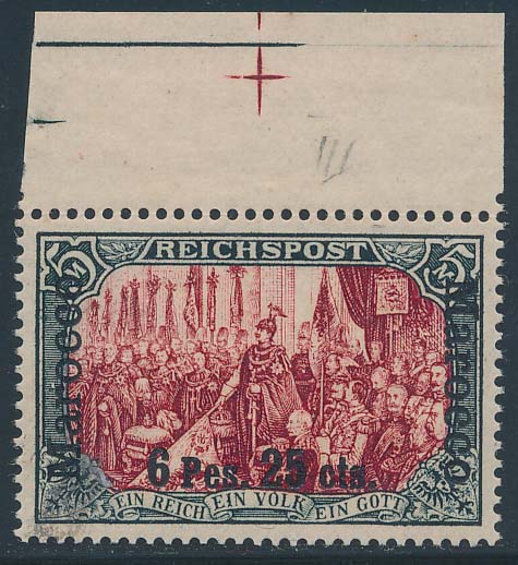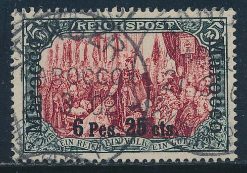 30 Pf. Handstpl.-Aufdruck mit zentrischen Stpl. "TIEN(TSIN) vom 30.1.01 mehrfach sign. u. neues Fotoattest Jäschke-L."echt, bis auf einen hellen u. verkürzten Zahn oben rechts keine weiteren Mängel" eine seltene Marke |
