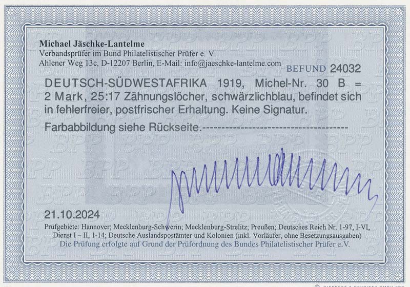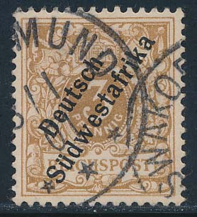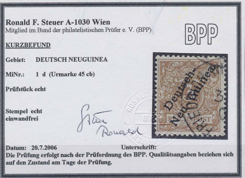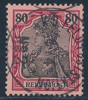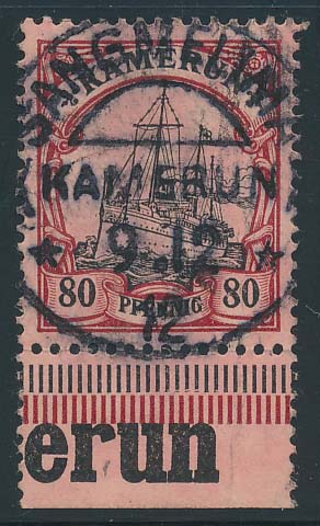 Mitläufer 50 Pf. Krone-Adler "d"-Farbe mit zentrischen Stpl. "APIA" (Schweizer Stpl.) Pracht gepr. Dr. Lantelme u. Steuer |