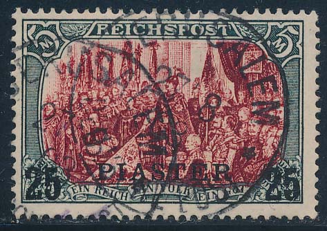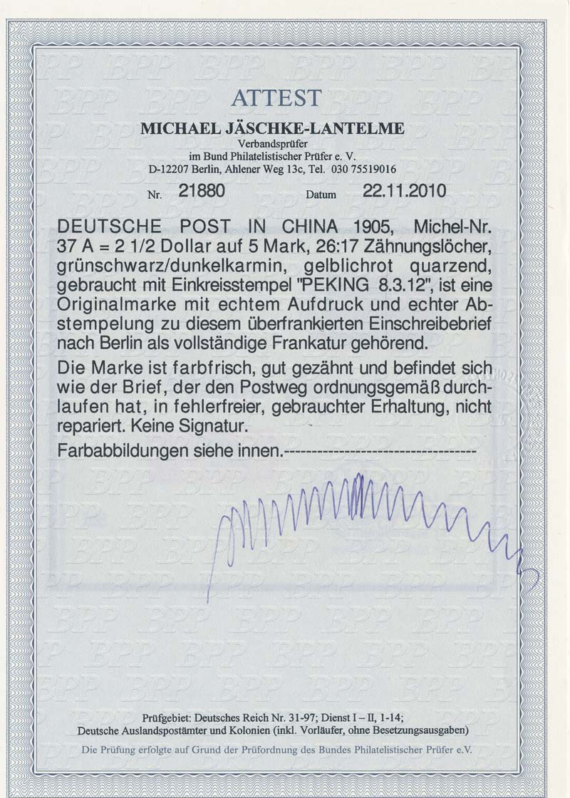 Petschili 40 Pf. Reichspost Prachtwert auf Bf.-St. mit glasklaren K1 "PEKING" Pracht neuer Befund Jäschke-L. "echt u. einwandfrei" |