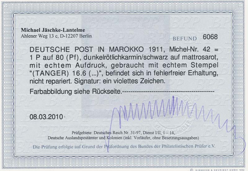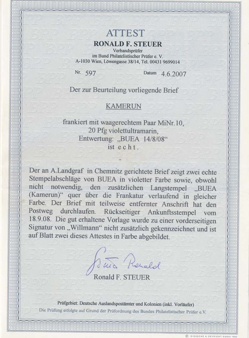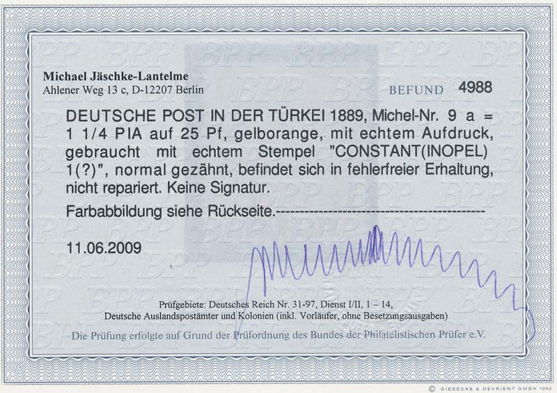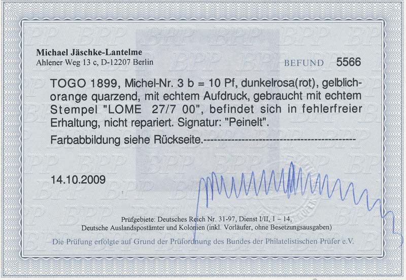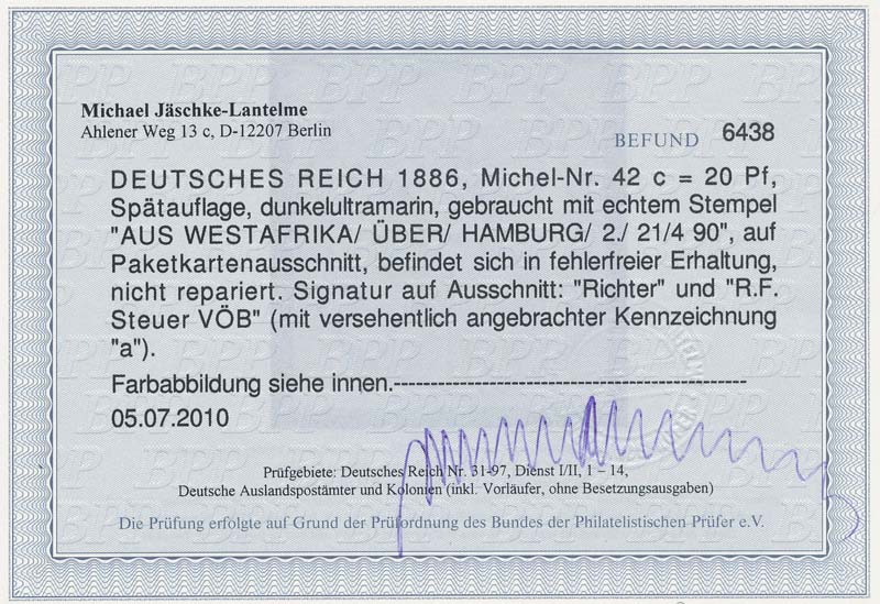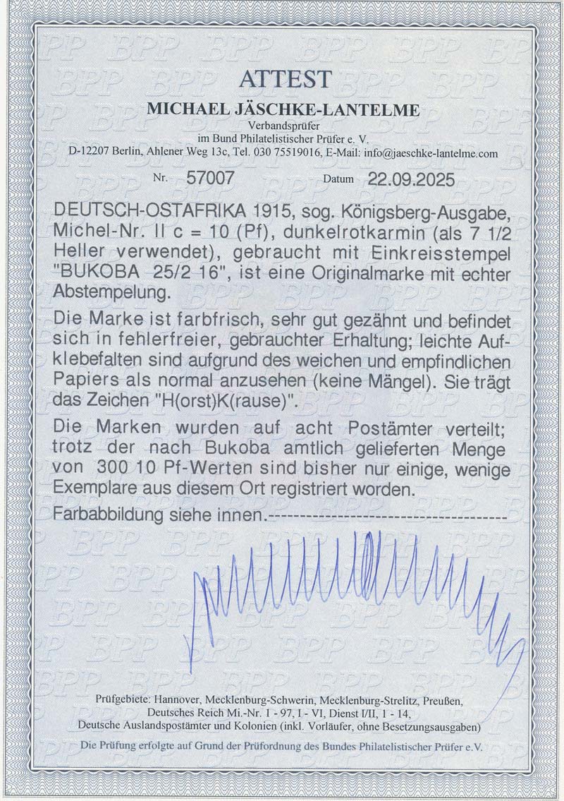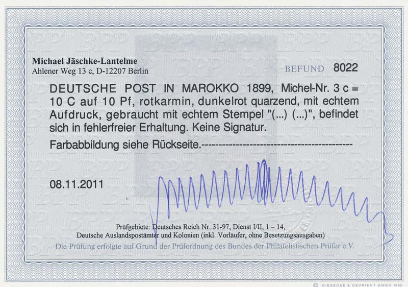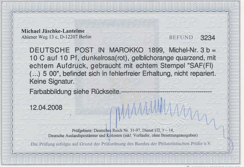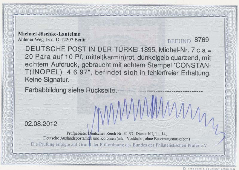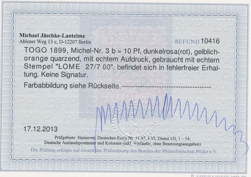 10 Pf. Krone-Adler "b"-Farbe zentrisch gestpl. Pracht Befund Jäschke-L. "echt u. einwandfrei" |