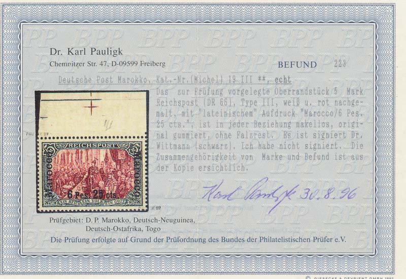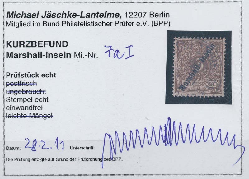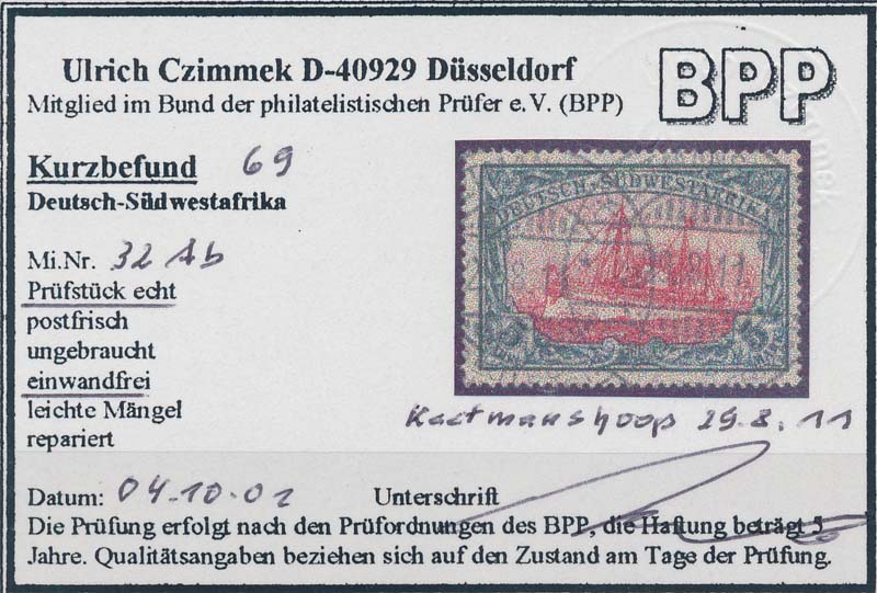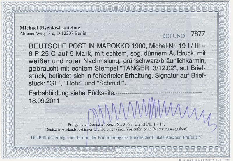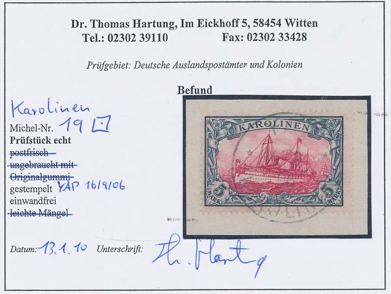 5 Mk Schiffe ohne Wz Pracht mit Fotoattest Jäschke-L. "echt u. einwandfrei" |