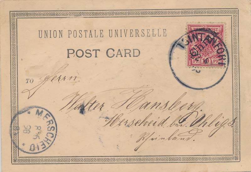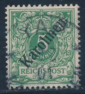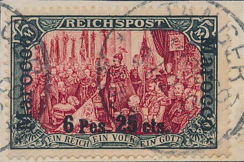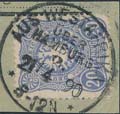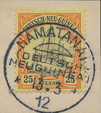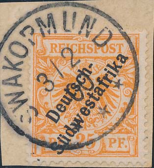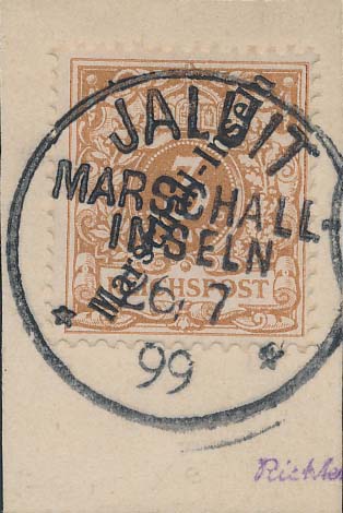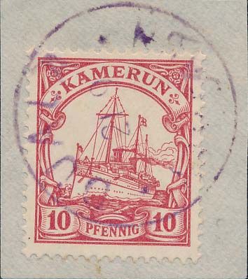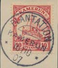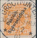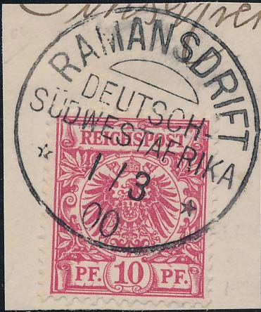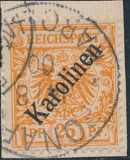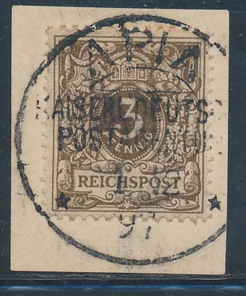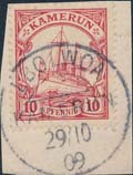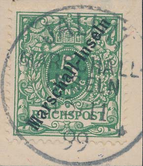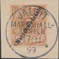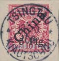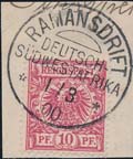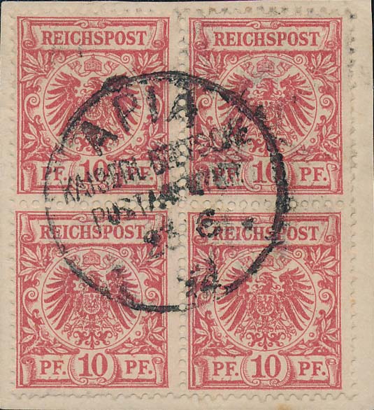 Vorläufer 10 Pf. Krone-Adler im auf Bf.-St. mit zentrischen Stpl. "APIA" vom 23.6.94, r. untere Marke kurze Zähne |