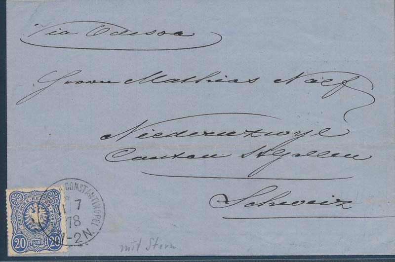 Vorläufer 3 Pf. Krone-Adler "b"-Farbe Prachtwert auf Bf.-St. mit zentrischen Stpl. "KLEIN POPO" gepr. Bothe |