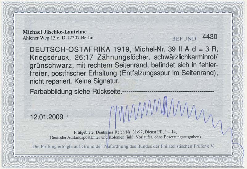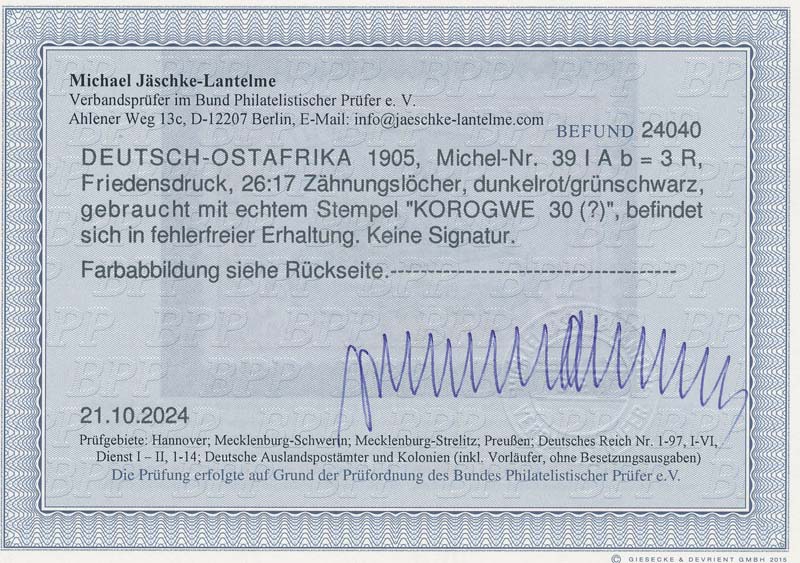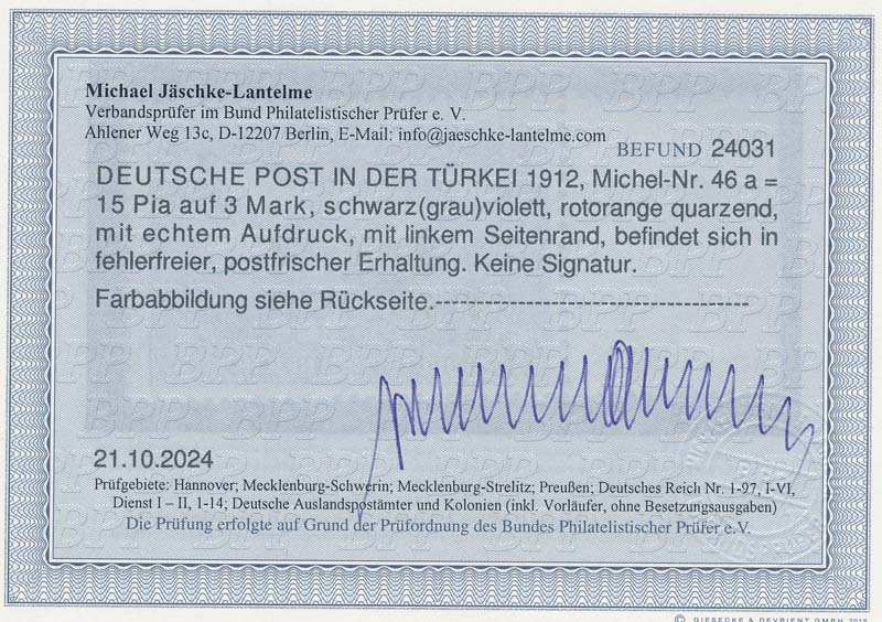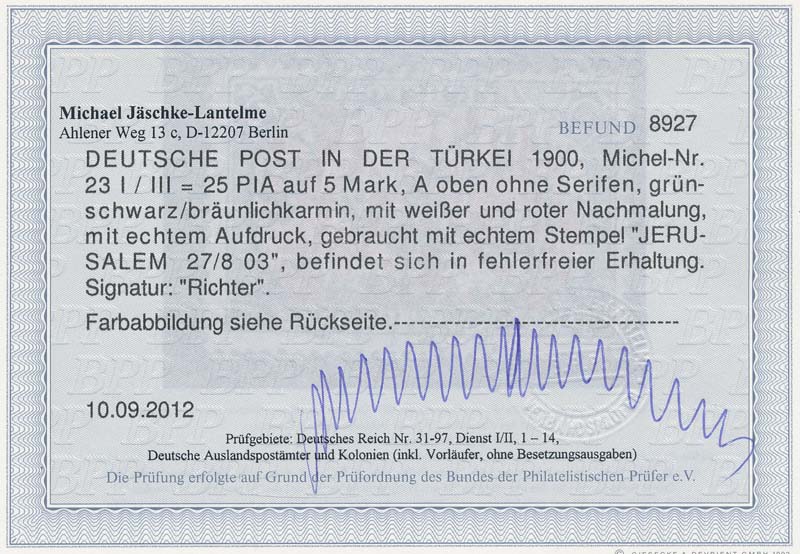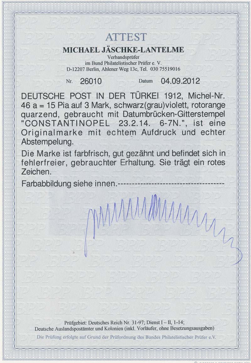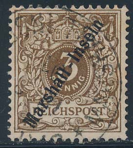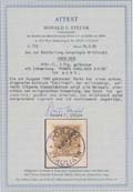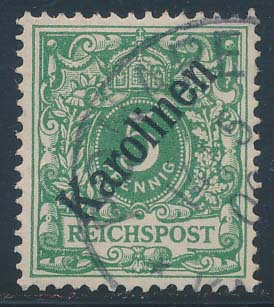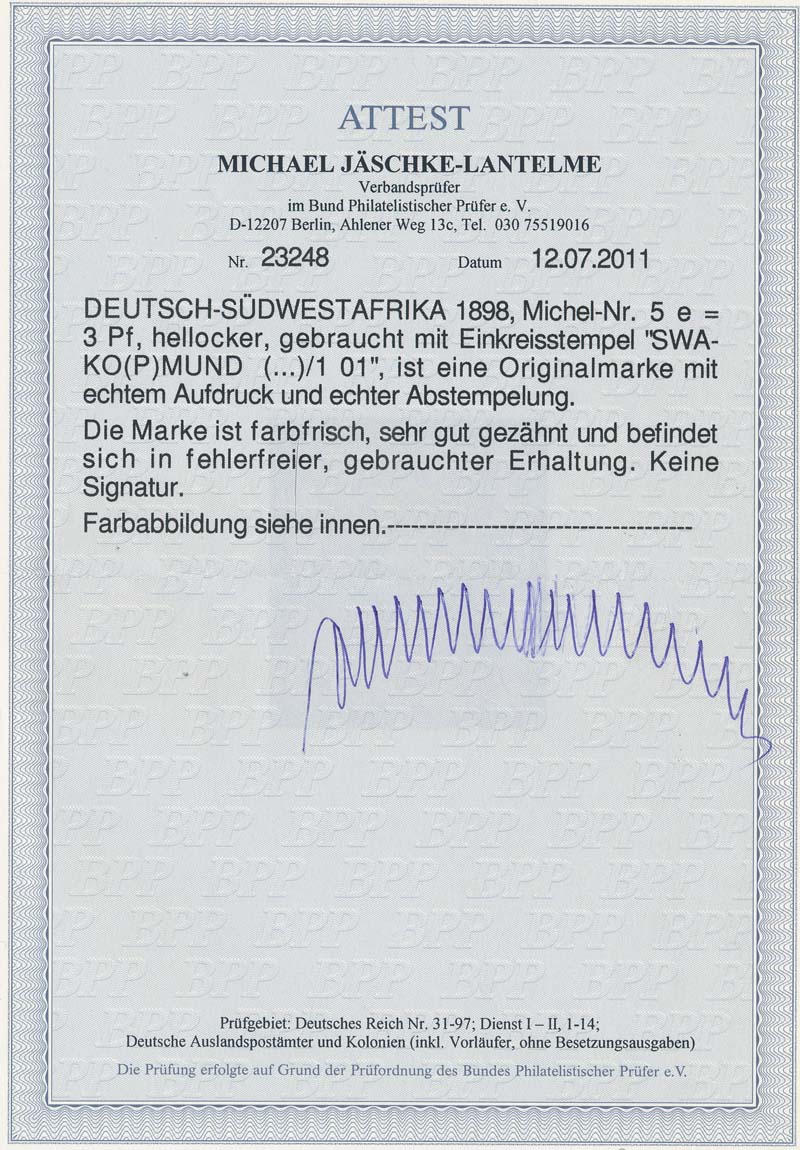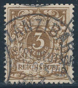 3 Pf. Krone-Adler "e"-Farbe sauber gestpl. Pracht Befund Jäschke-L. "echt u. einwandfrei" |