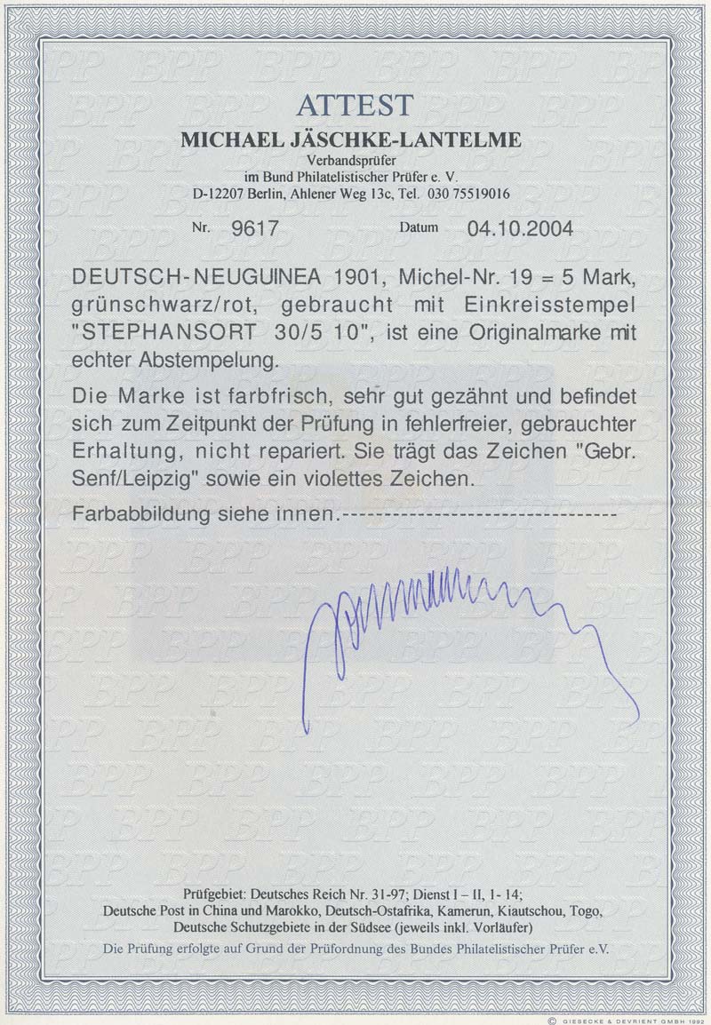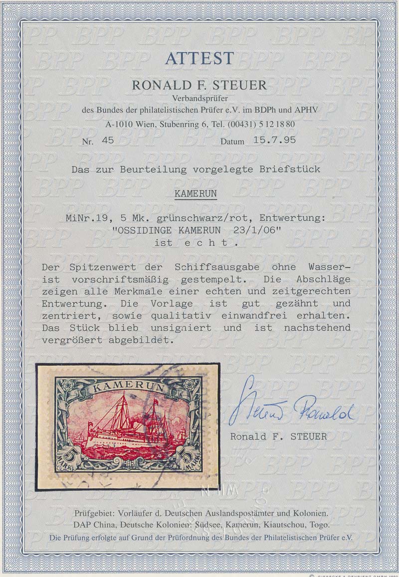 5 Mk Schiffe ohne Wz zentrisch gestpl. Pracht neues Fotoattest Jäschke-L. "echt u. einwandfrei" |