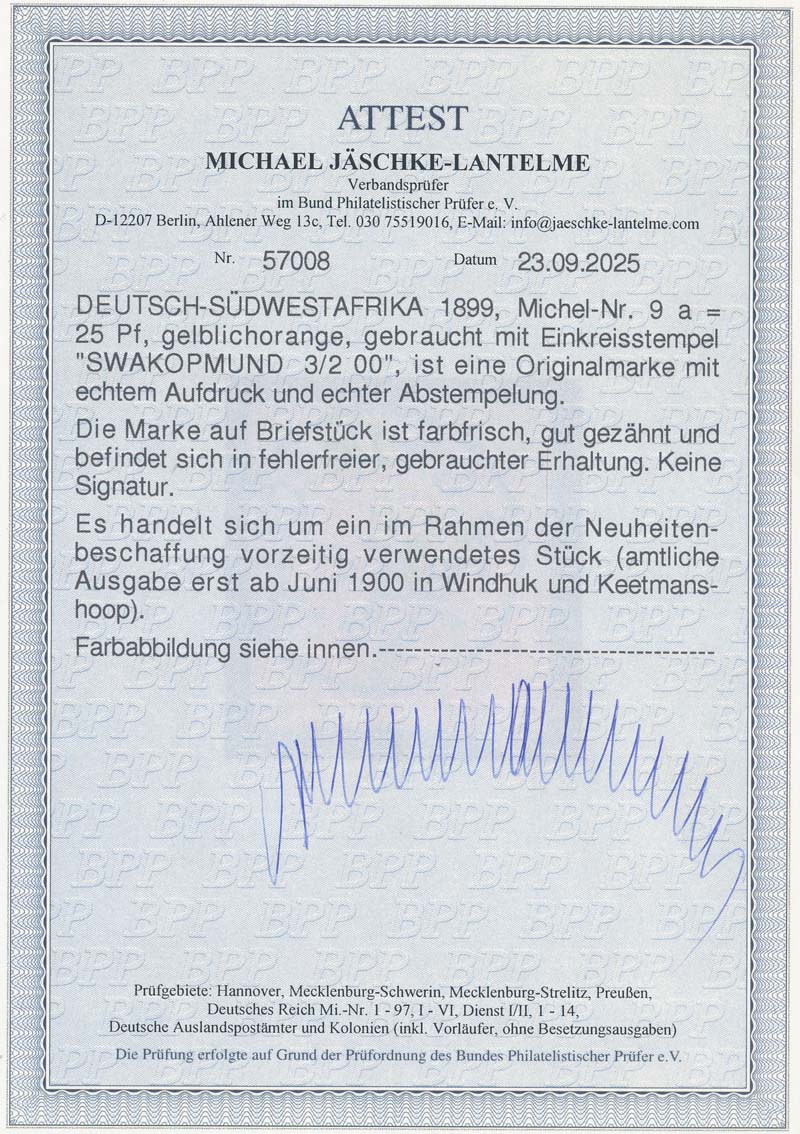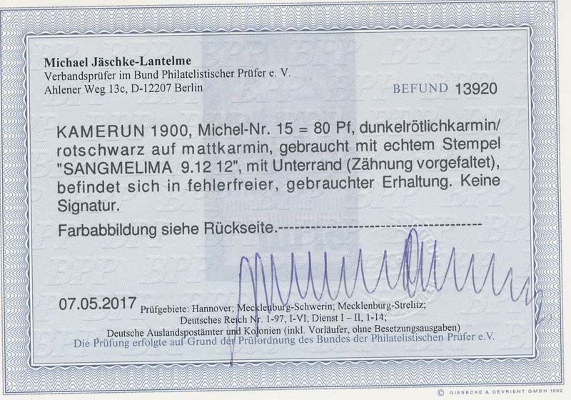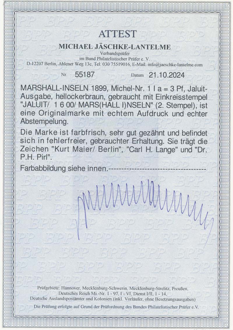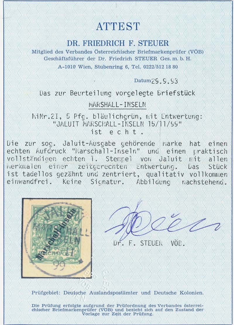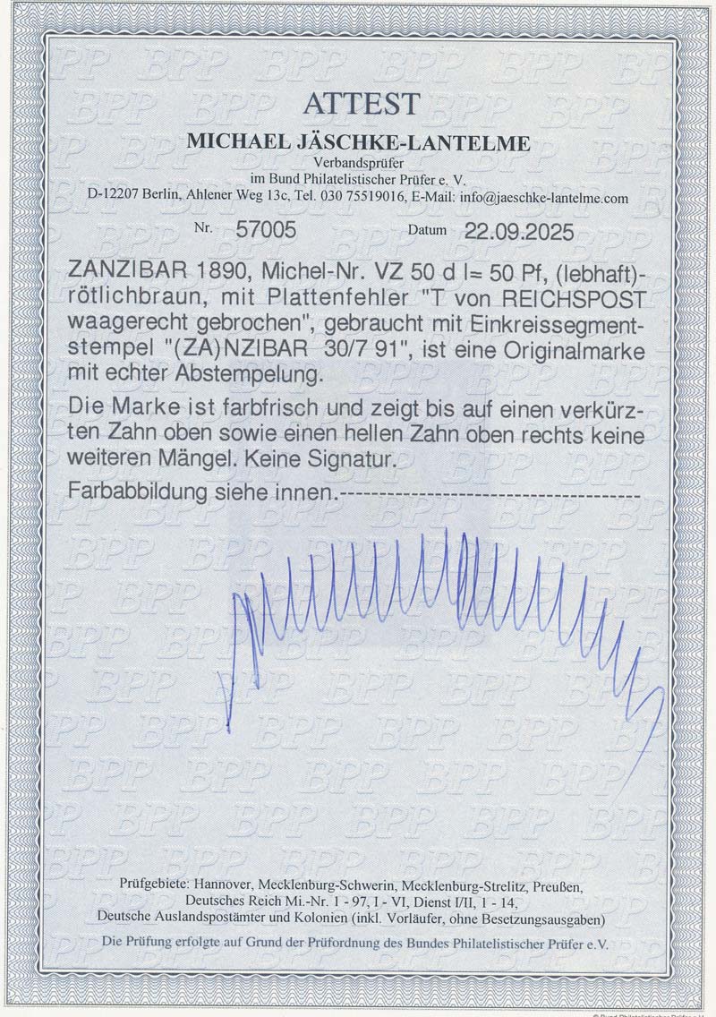 Vorläufer 50 Pf. Krone-Adler "a"-Farbe im auf Bf.-St. mit glasklaren Stpl. "APIA" vom 21.5.90 tadellos! neues Fotoattest Jäschke-L. "echt u. einwandfrei" |