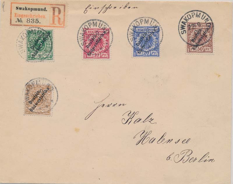 3 bis 20 Pf. Schiffe ohne Wz zusammen auf R-Bf. ab Apia v. 18.5.10 nach Berlin |