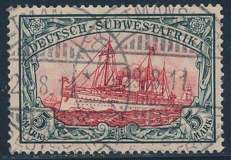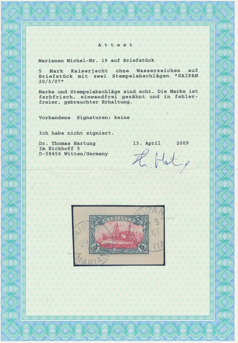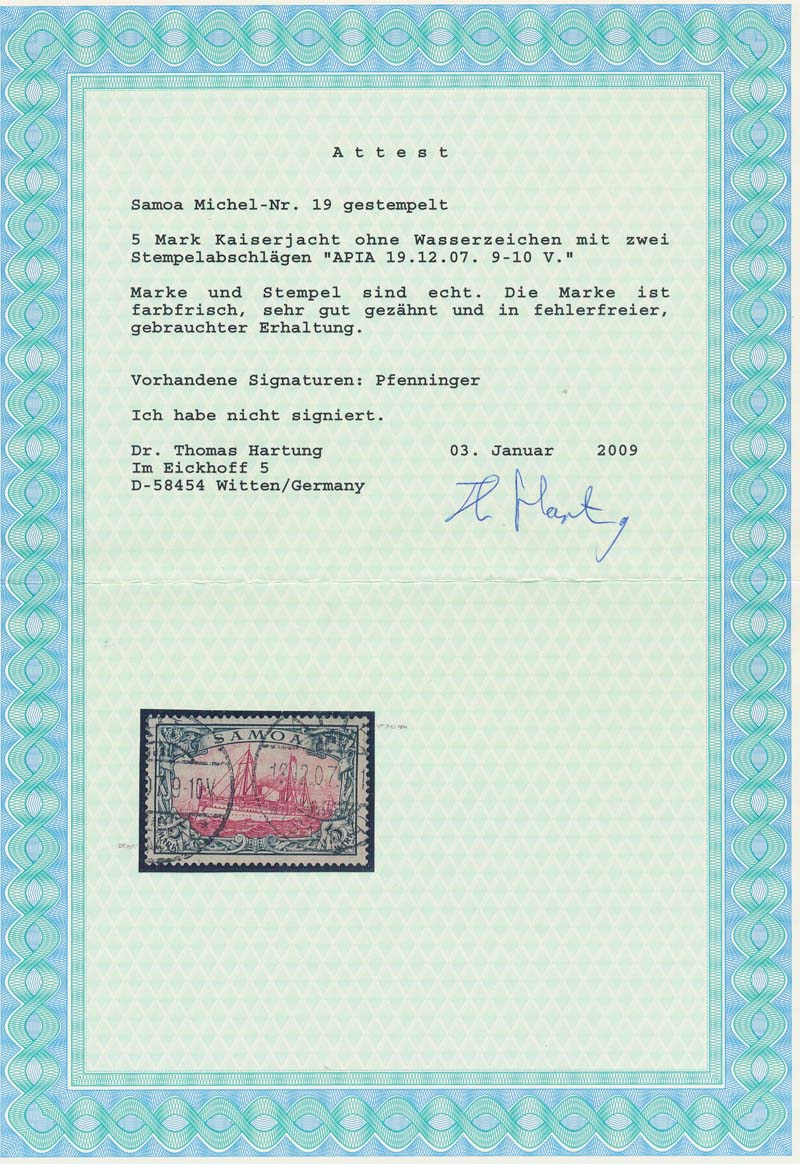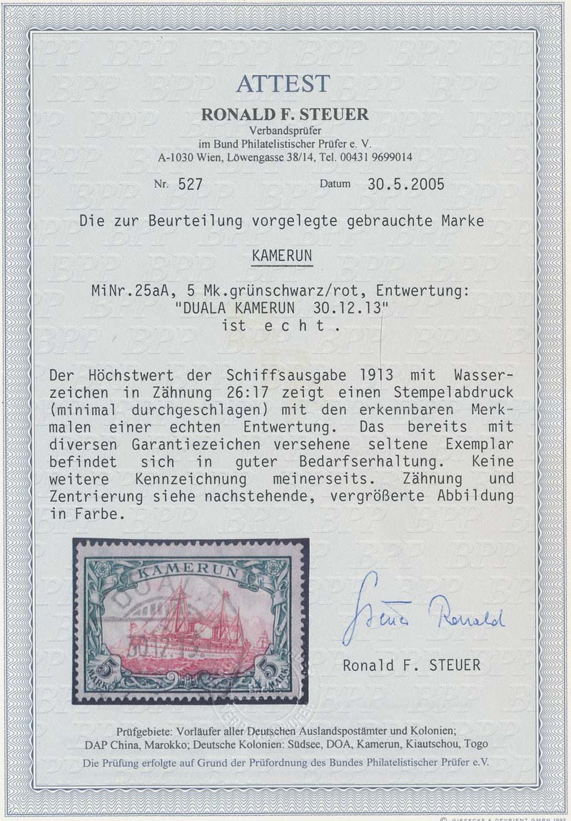 5 Mk Schiffe ohne Wz sauber gestpl. Pracht Fotoattest Hartung "echt u. einwandfrei" |