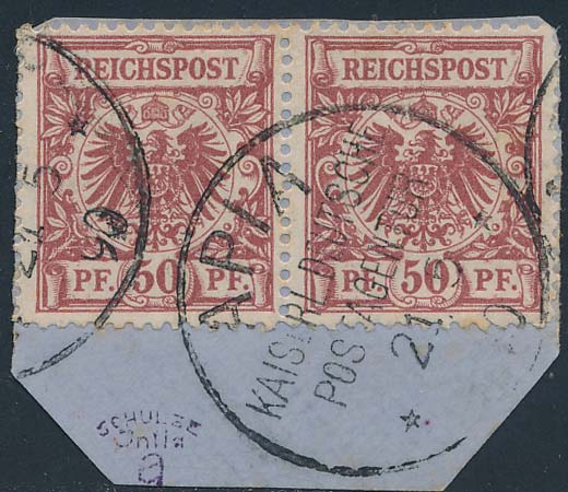 Vorläufer 50 Pf. Krone-Adler "a"-Farbe mit zentrischen Stpl. "KLEIN POPO" übl. gez. gepr. Steuer |