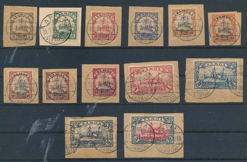 3 Pf. bis 5 Mk Schiffe ohne Wz Prachtsatz je auf Bf.-St. u. gestpl. "APIA" 50 Pf. Bug sonst tadellos! 25 Pf. bis 5 Mk gepr. Bothe |
