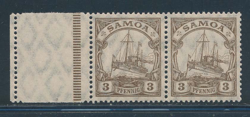 3 Pf. Schiffe mit Wz. im vom l. Bogenrand, dort mit kpl. anhängendes Leerfeld postfrisch Pracht |